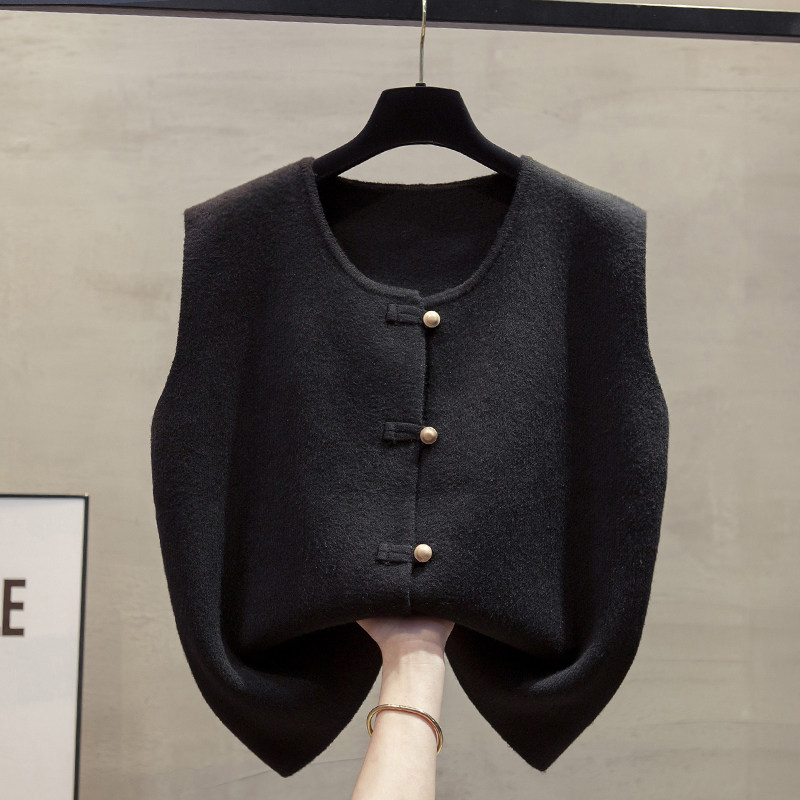 开衫圆领新中式针织马甲背心女2025秋冬新款宽松外穿马夹毛衣坎肩