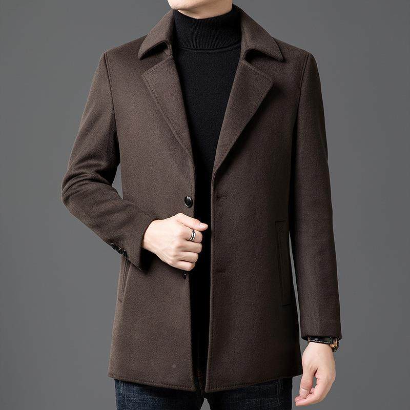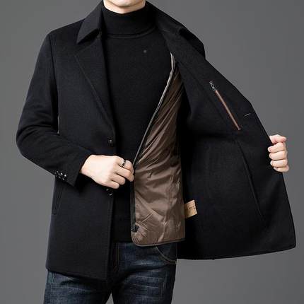 面羊毛大衣双秋冬尼新款中青年男士中长款西装领YRC毛呢衣风外套