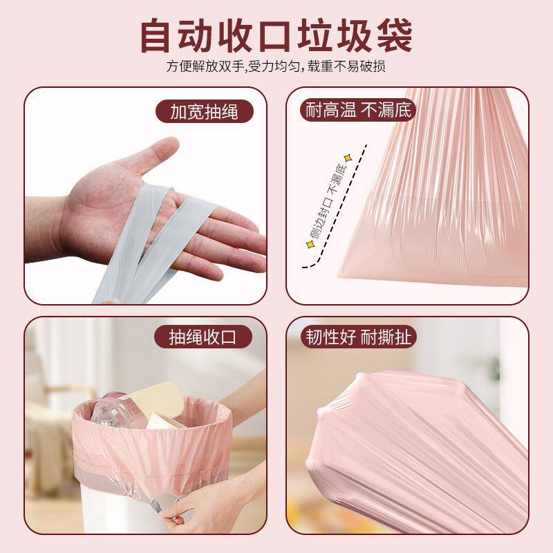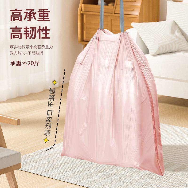 3卷冰梅粉垃圾袋家用加厚手提式抽绳厨房办公收口塑料袋实惠装