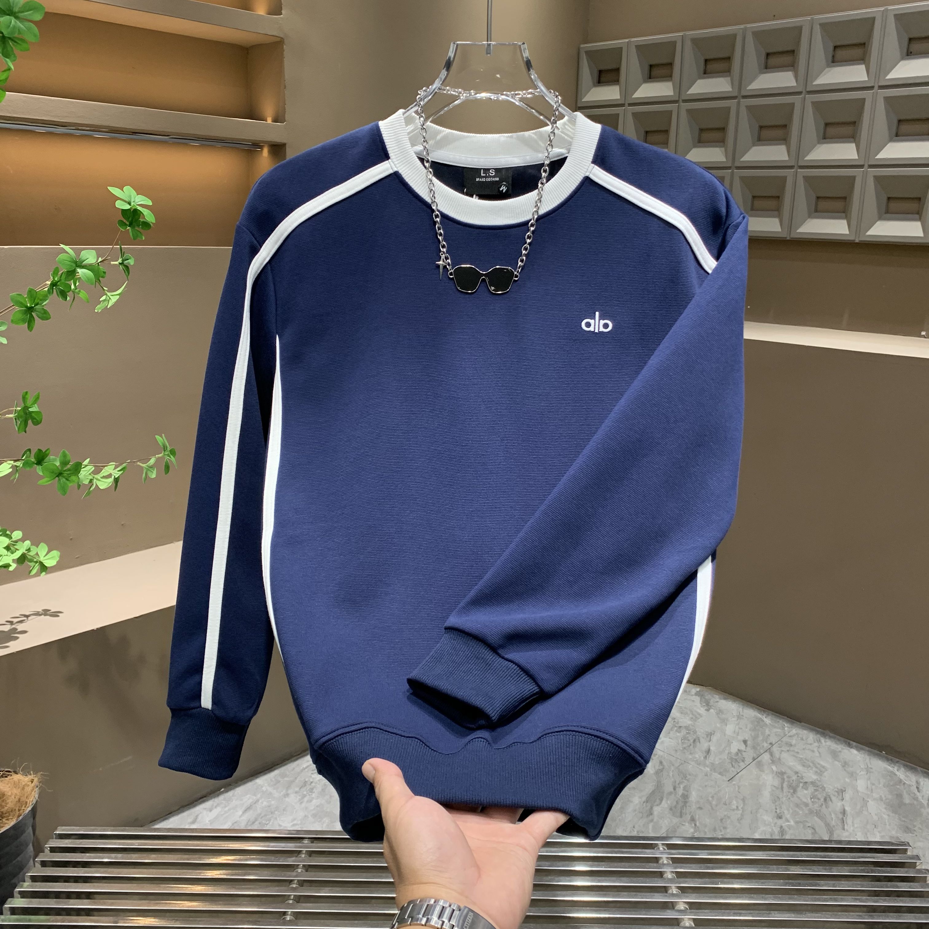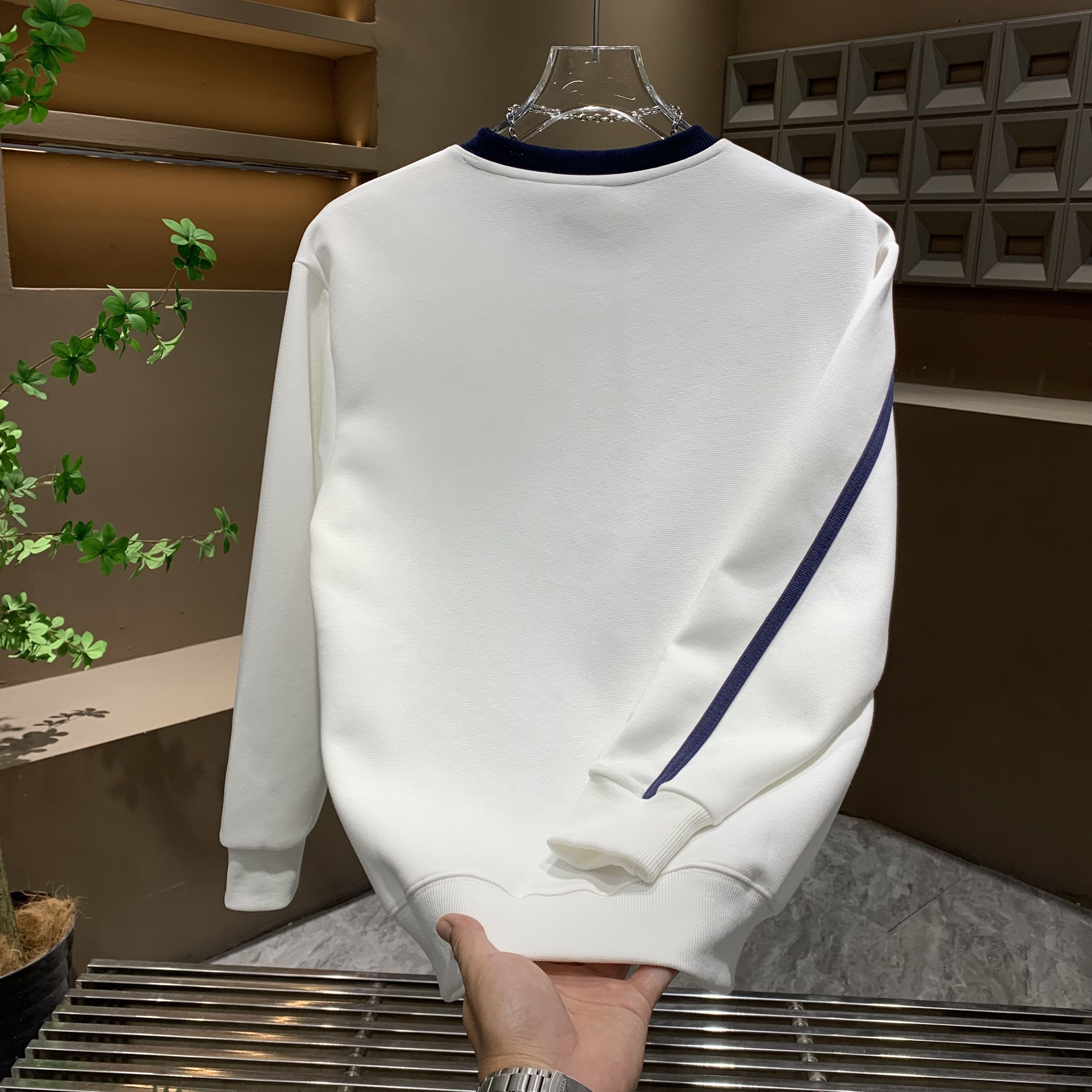 2025秋冬新款撞色拼接圆领卫衣男士时尚字母刺绣长袖T恤宽松上衣