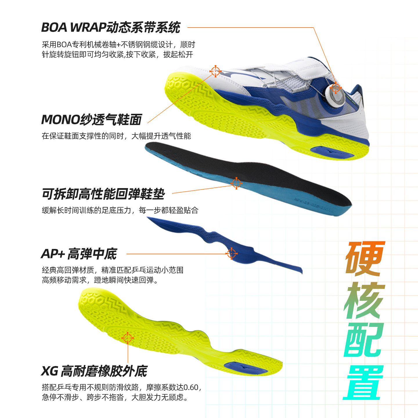 美津浓乒乓球鞋26新款男女士旋钮系带专业运动鞋子MEDAL WRAP BOA