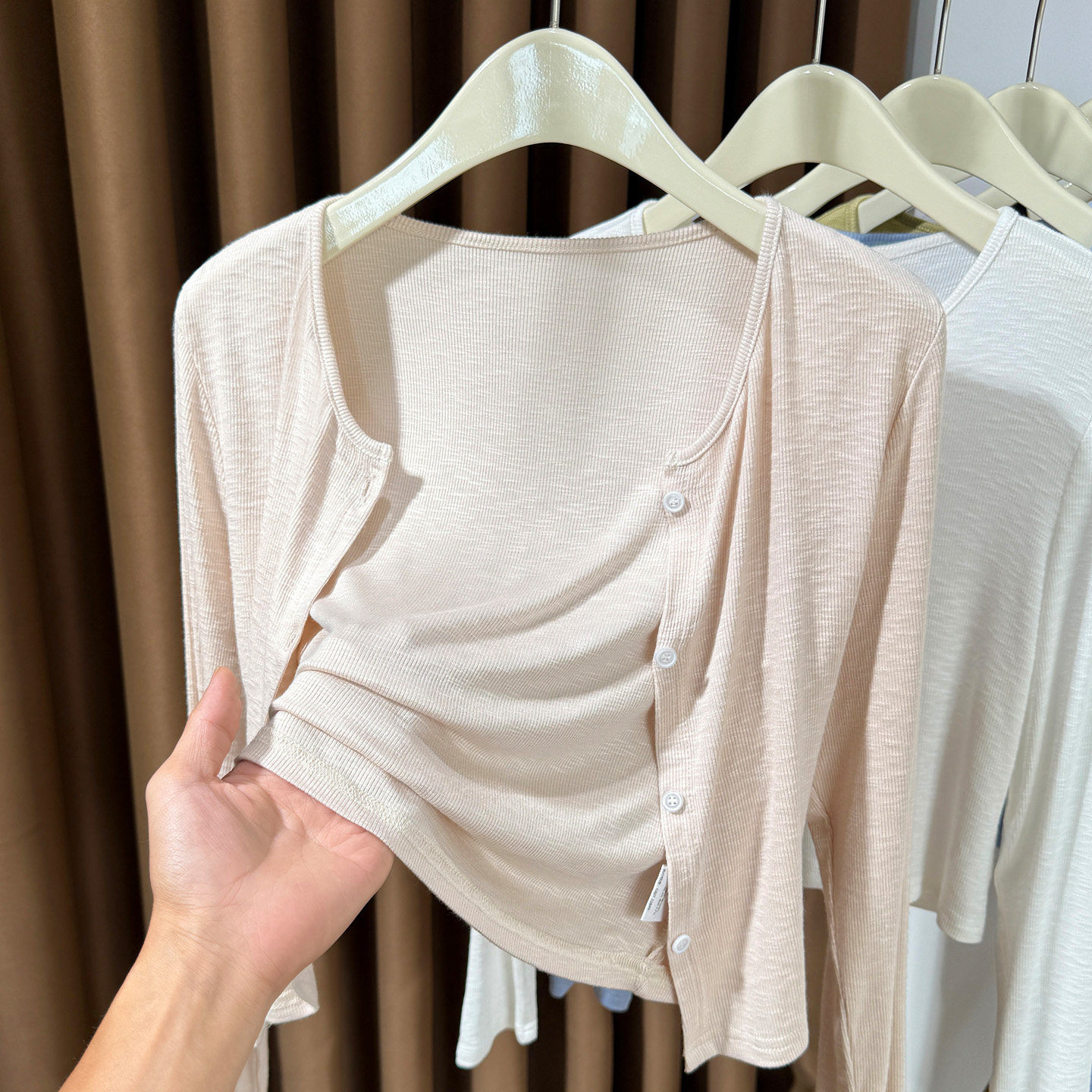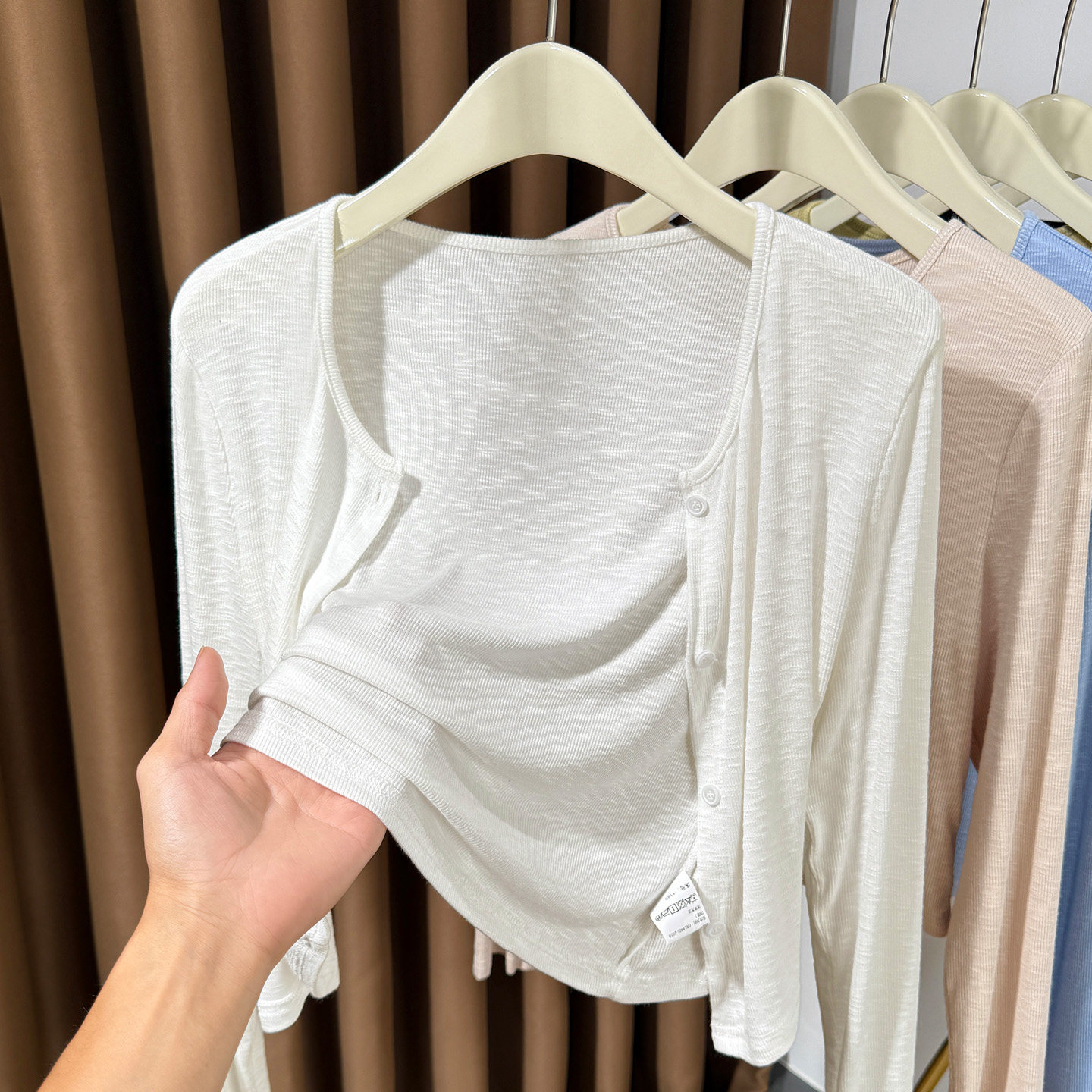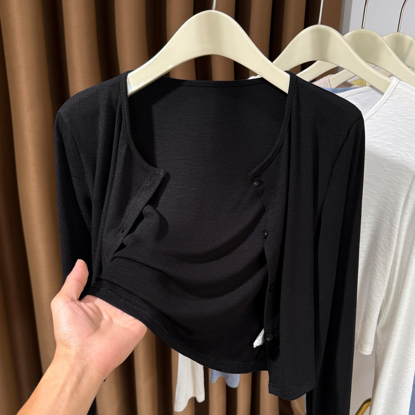 蓝色冰丝针织开衫女薄款小外套配吊带连衣裙小外搭防晒披肩小坎肩