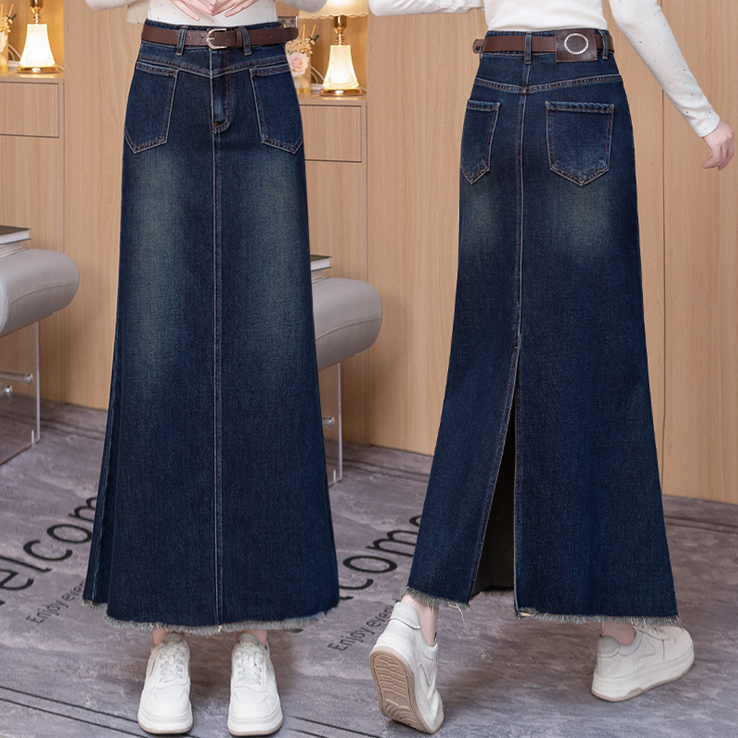 复古牛仔半身裙女2025年春秋季新款高腰显瘦中长款包臀鱼尾a字裙