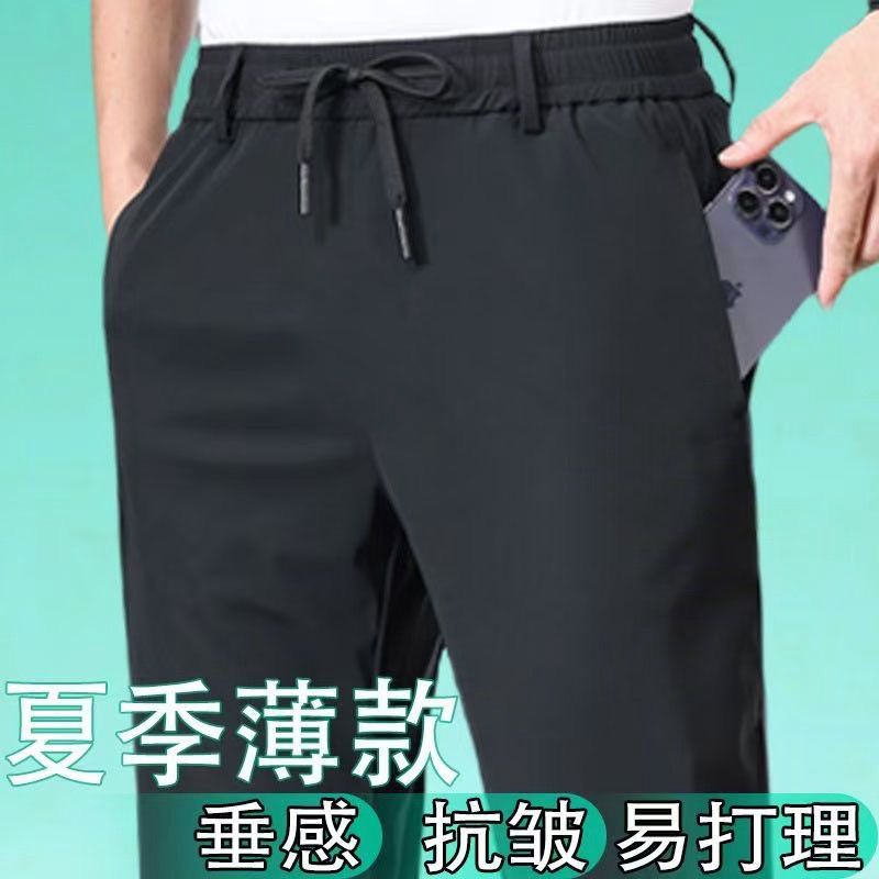 【冰丝高弹力】男士户外休闲裤夏季松紧腰防晒运动裤薄款直筒长裤