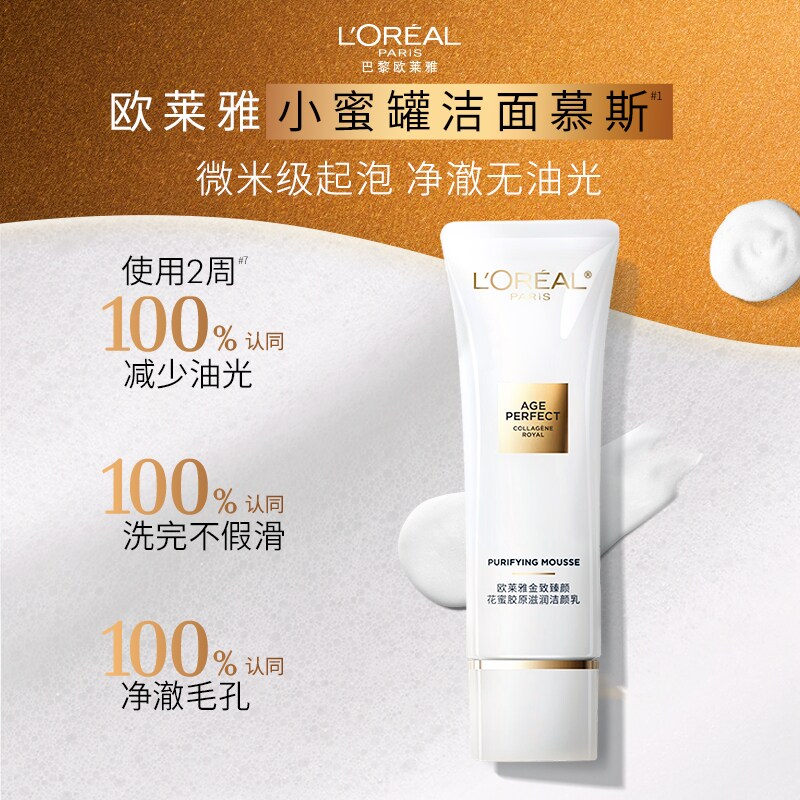 欧莱雅花蜜胶原洁面乳氨基酸洗面奶温和深层清洁保湿护肤品