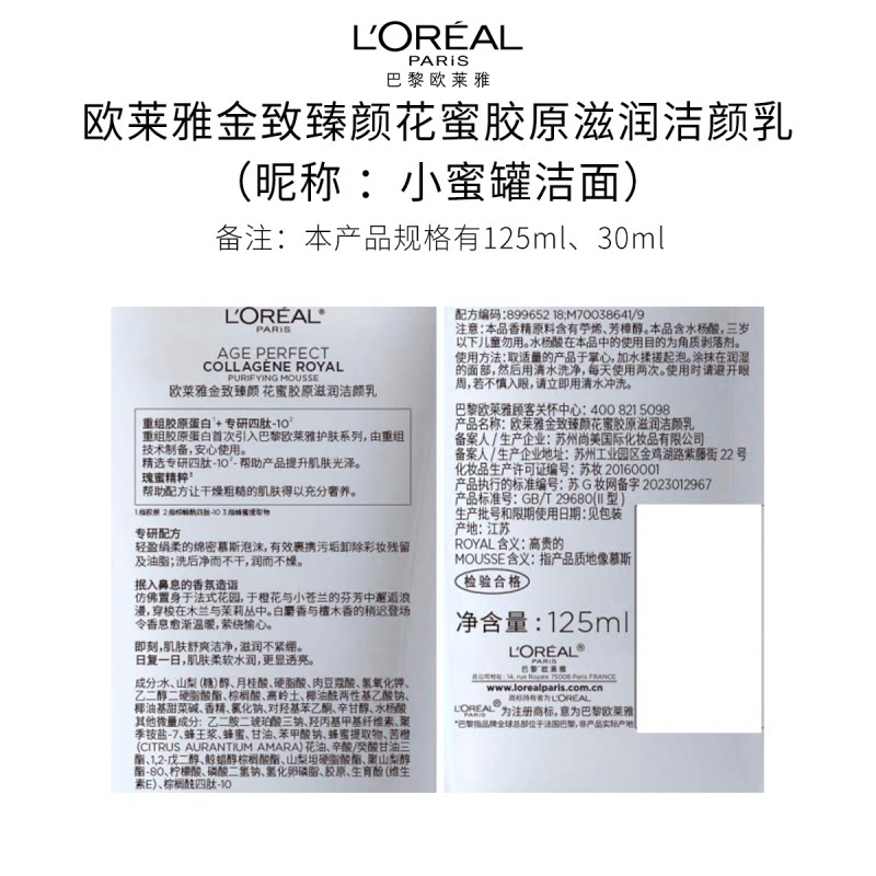 欧莱雅花蜜胶原洁面乳氨基酸温和