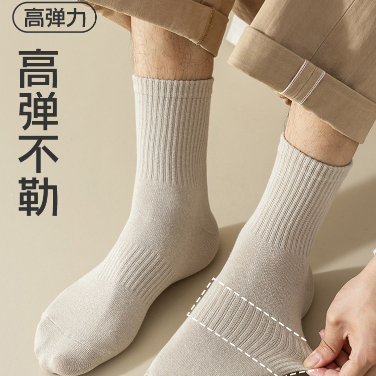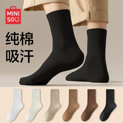 名创优品黑色男士纯棉10A抗菌中筒棉袜吸汗透气防臭不闷汗袜子冬