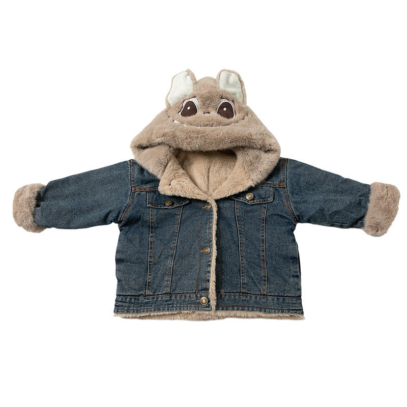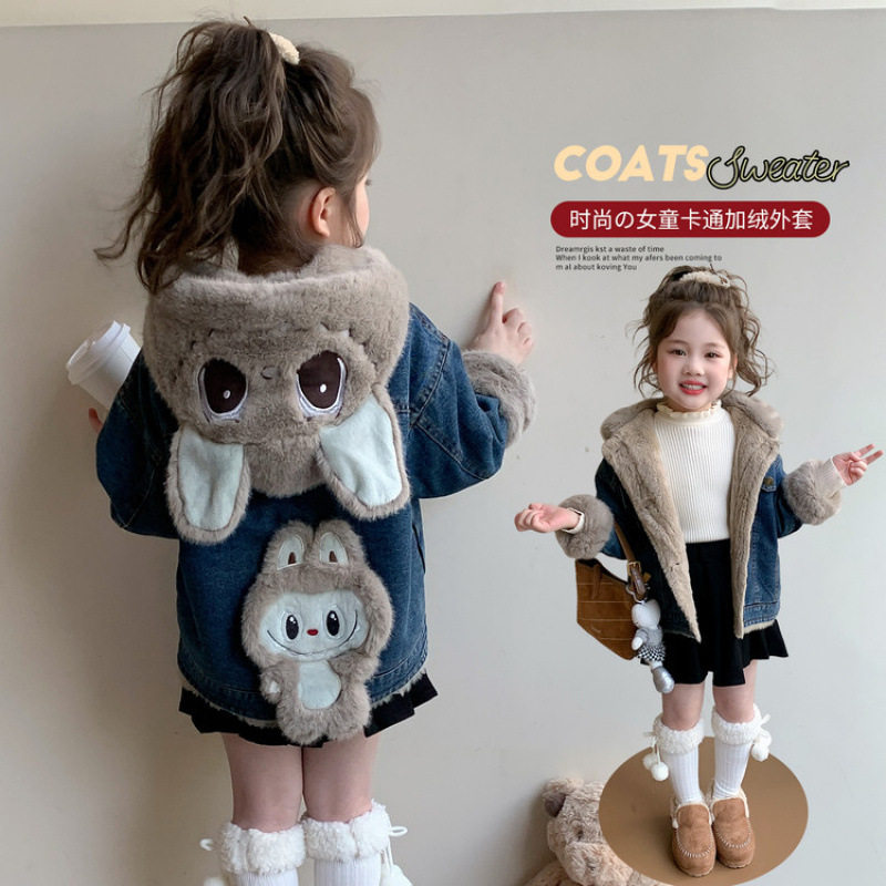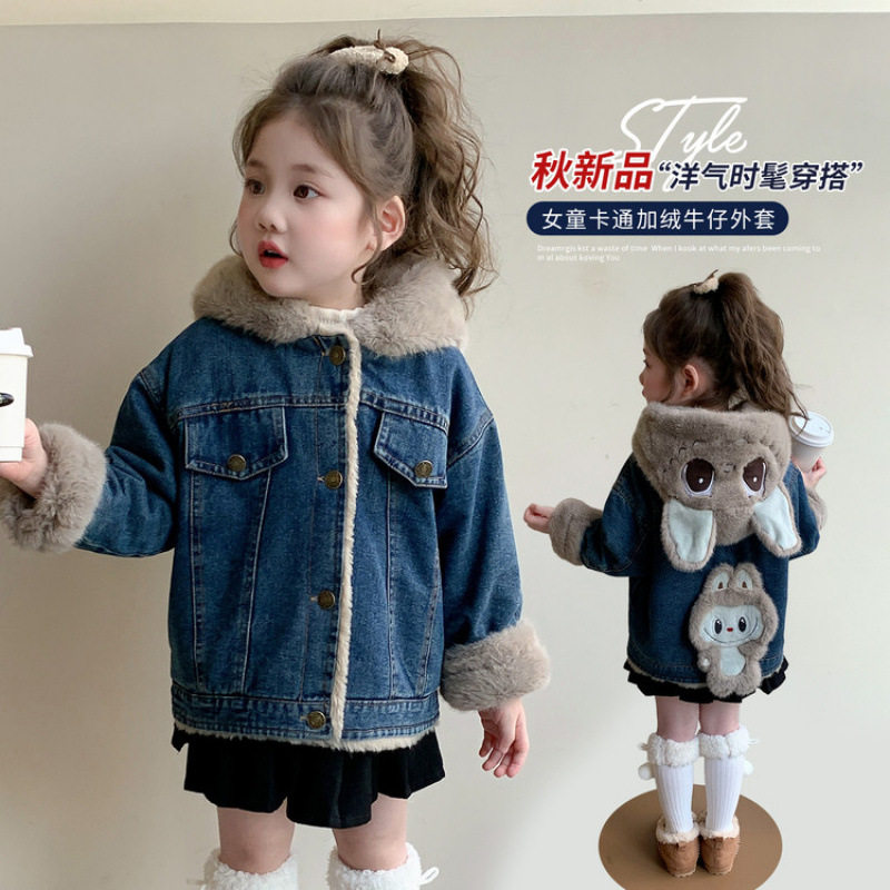 女童加绒牛仔外套秋冬季2025新款儿童拉布布保暖上衣宝宝可爱棉服