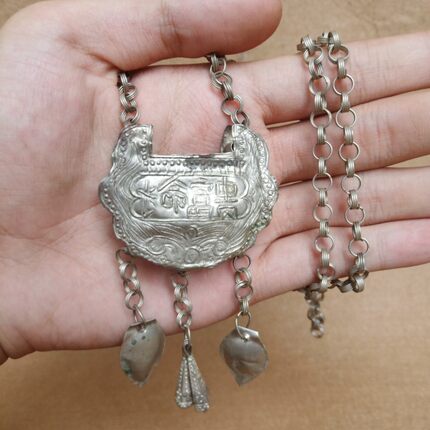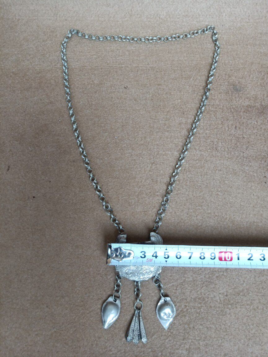 清代 民族手工富贵长命保平安老银锁 老银项链