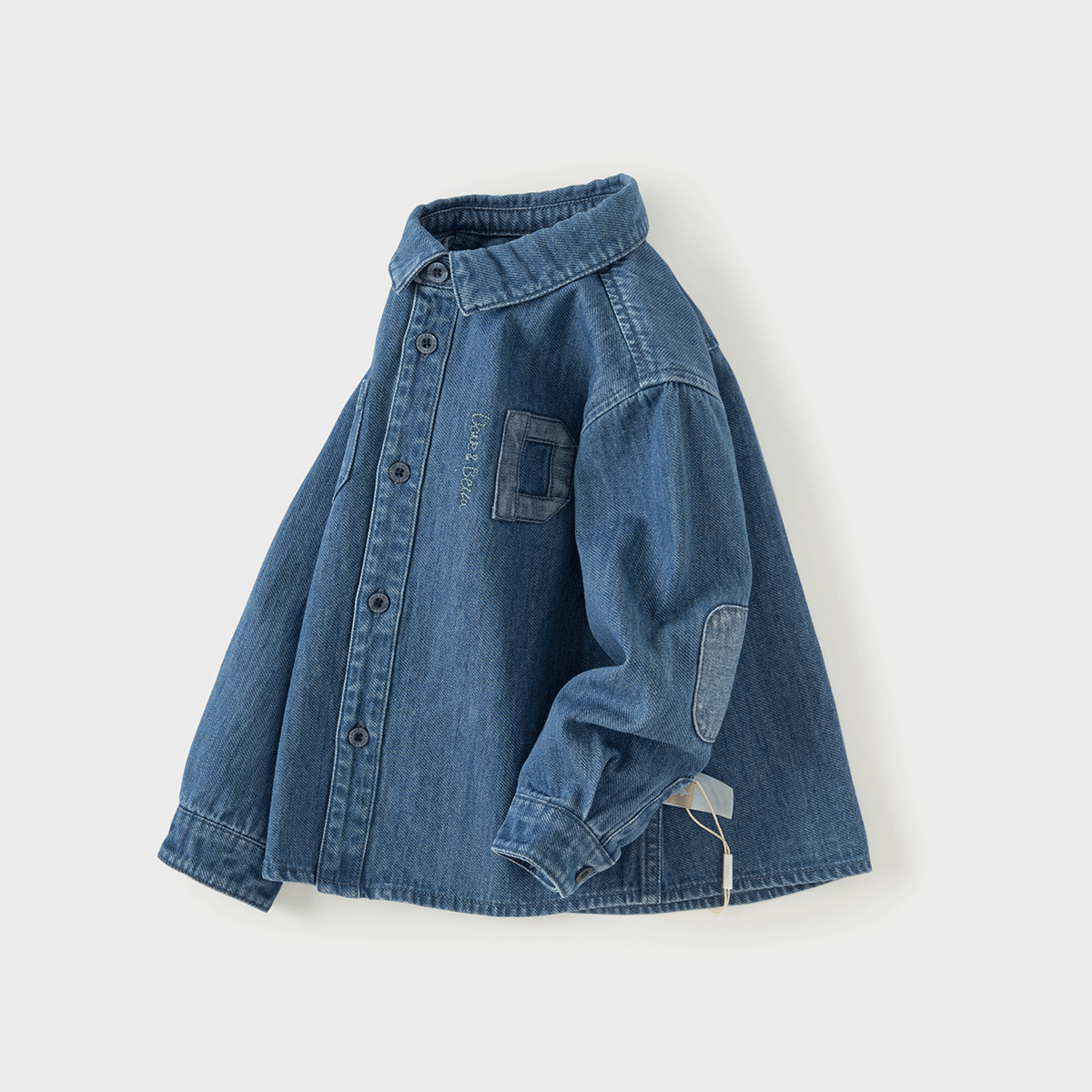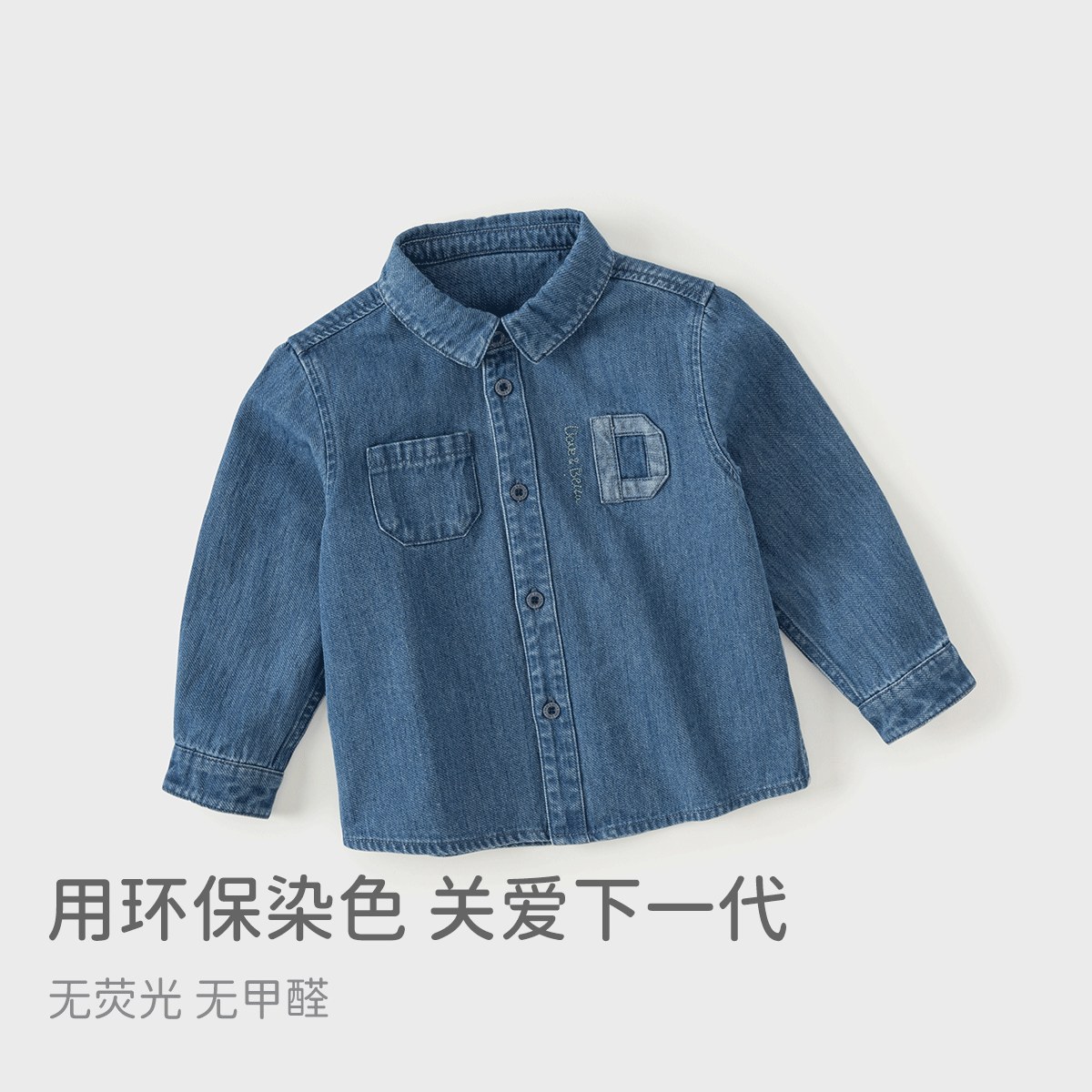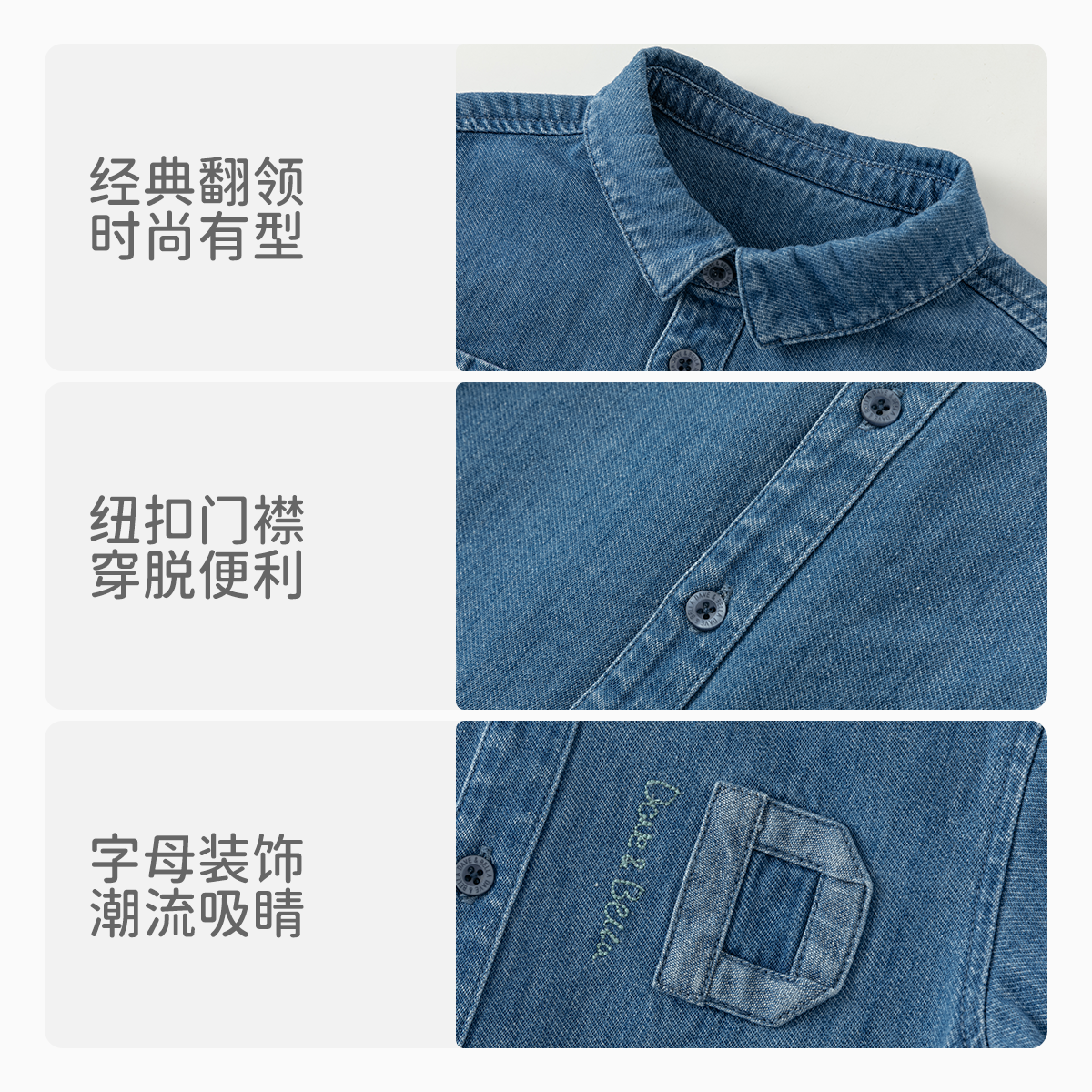 戴维贝拉男童牛仔衬衫春秋装儿童洋气衬衣宝宝纯棉上衣外套
