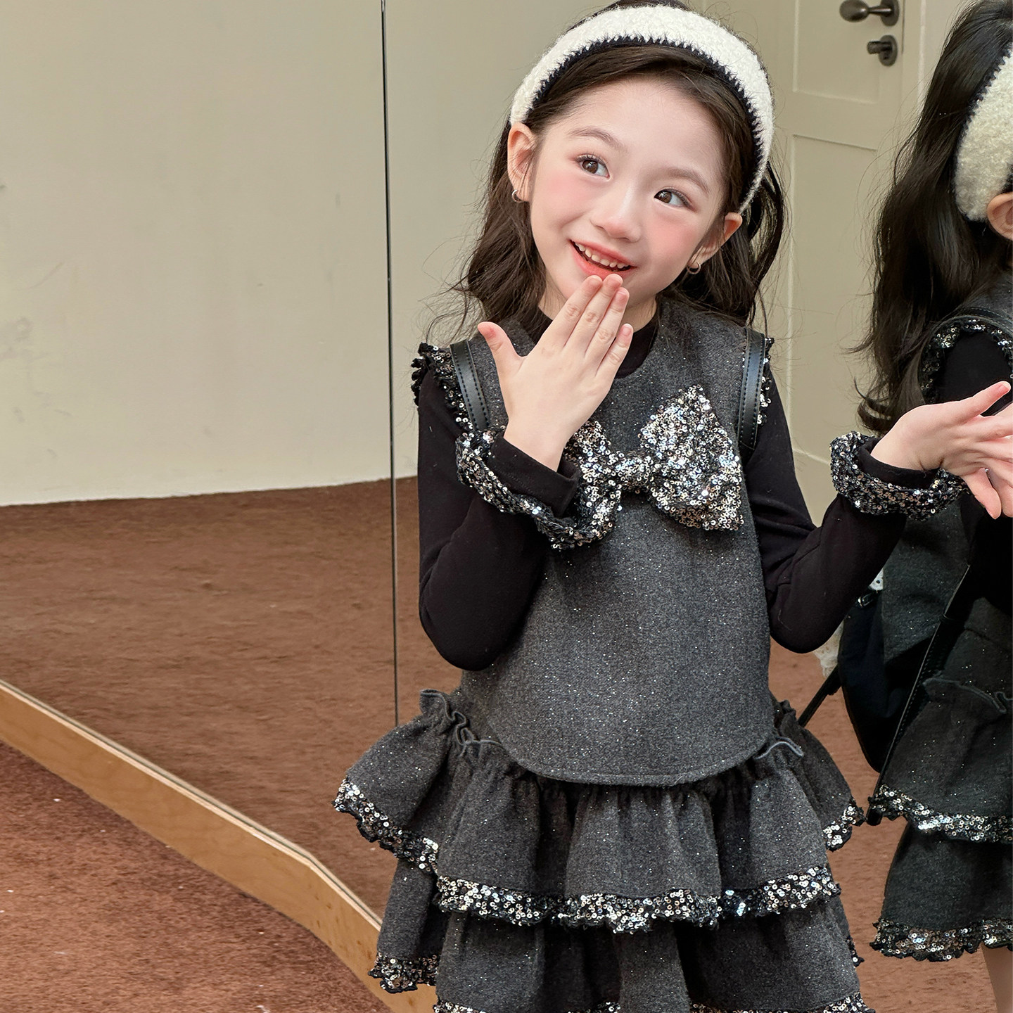 女童高级感灰色亮片马甲短裙