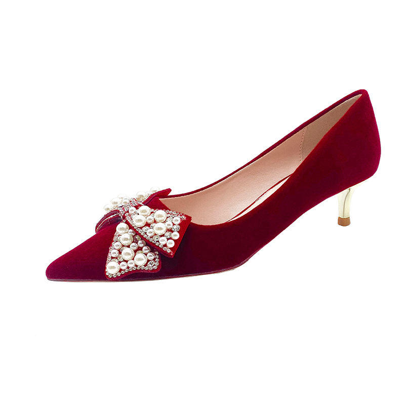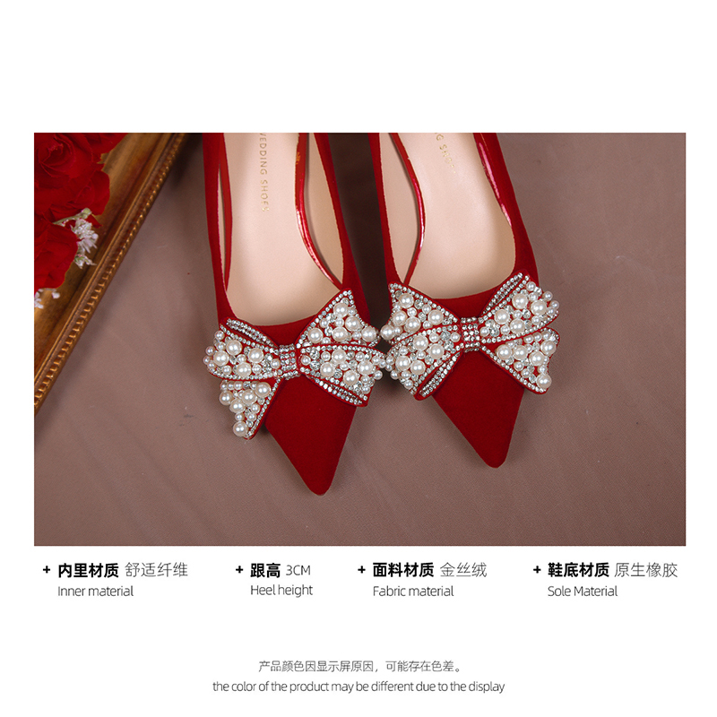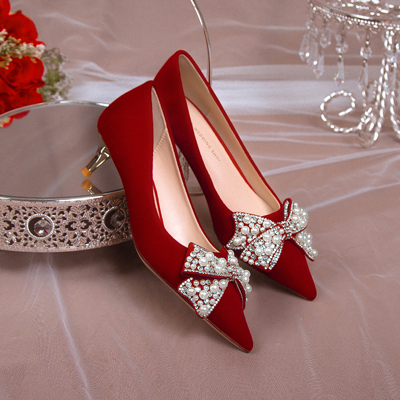 酒红色结婚鞋女2025年新款中式禾秀主婚纱两穿新娘高跟鞋平时可穿