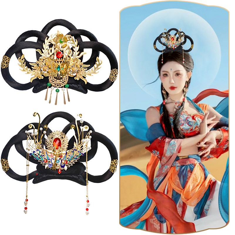 古装汉服敦煌飞天头饰一体式舞蹈演出假发配饰古风仙女头饰套装