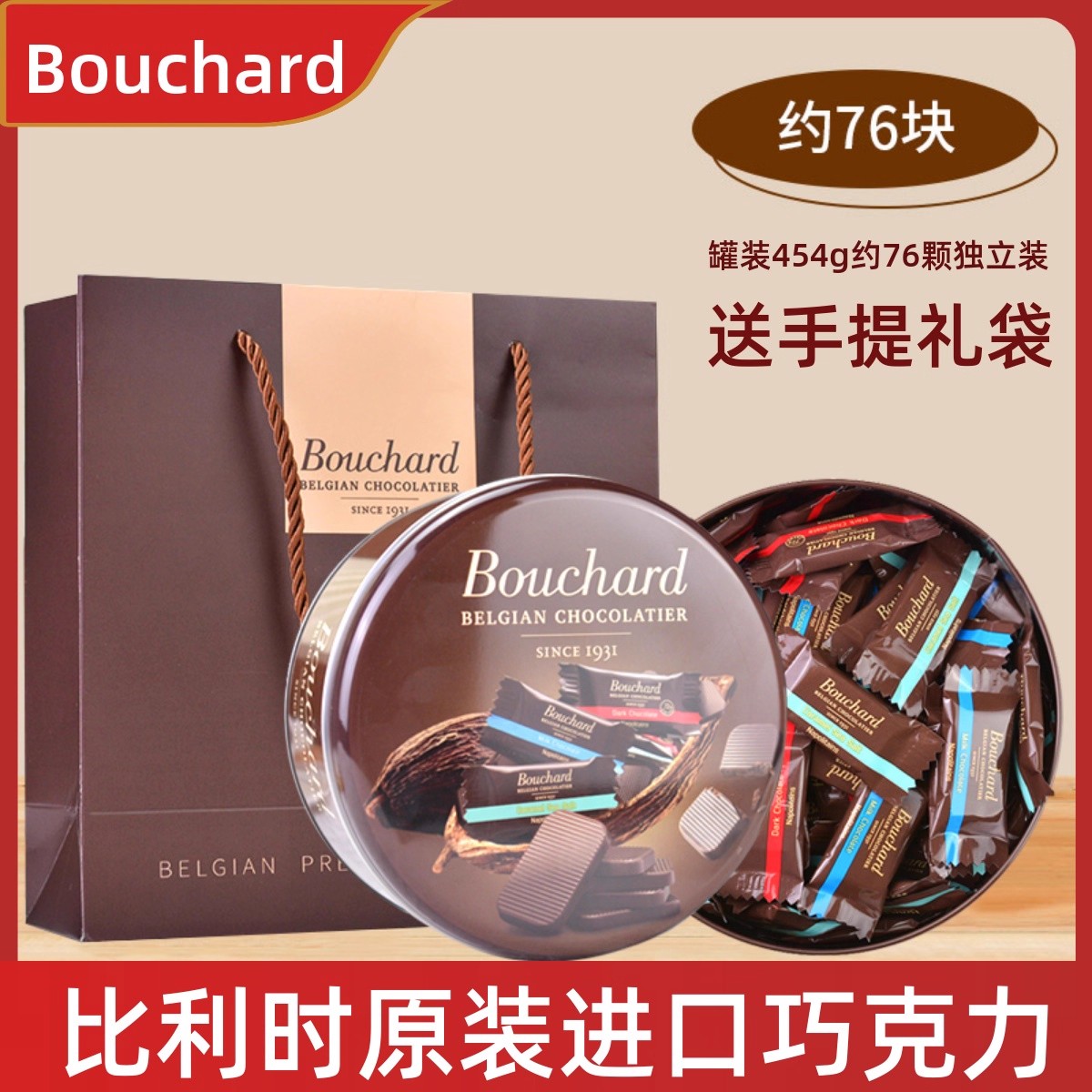 比利时进口Bouchard布夏德72%黑巧克力礼盒装牛奶海盐可可脂零食
