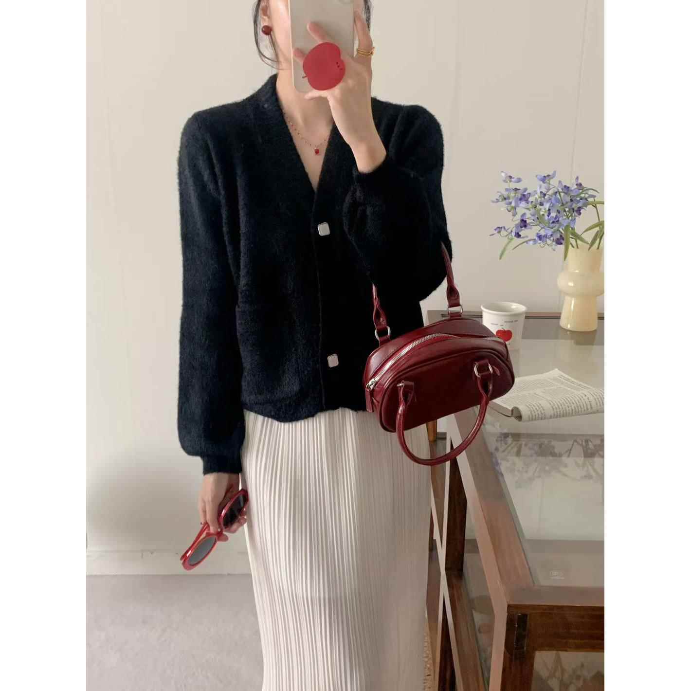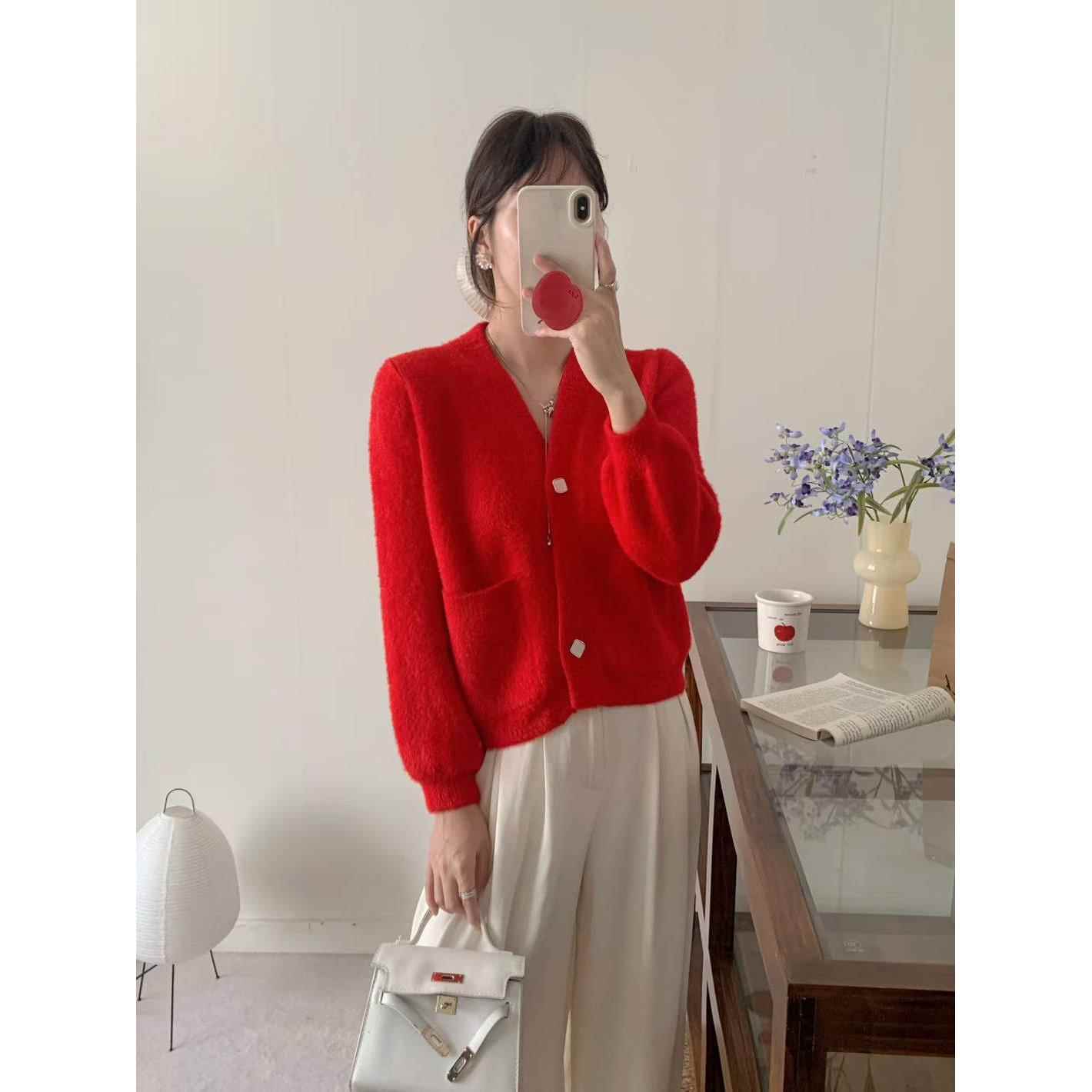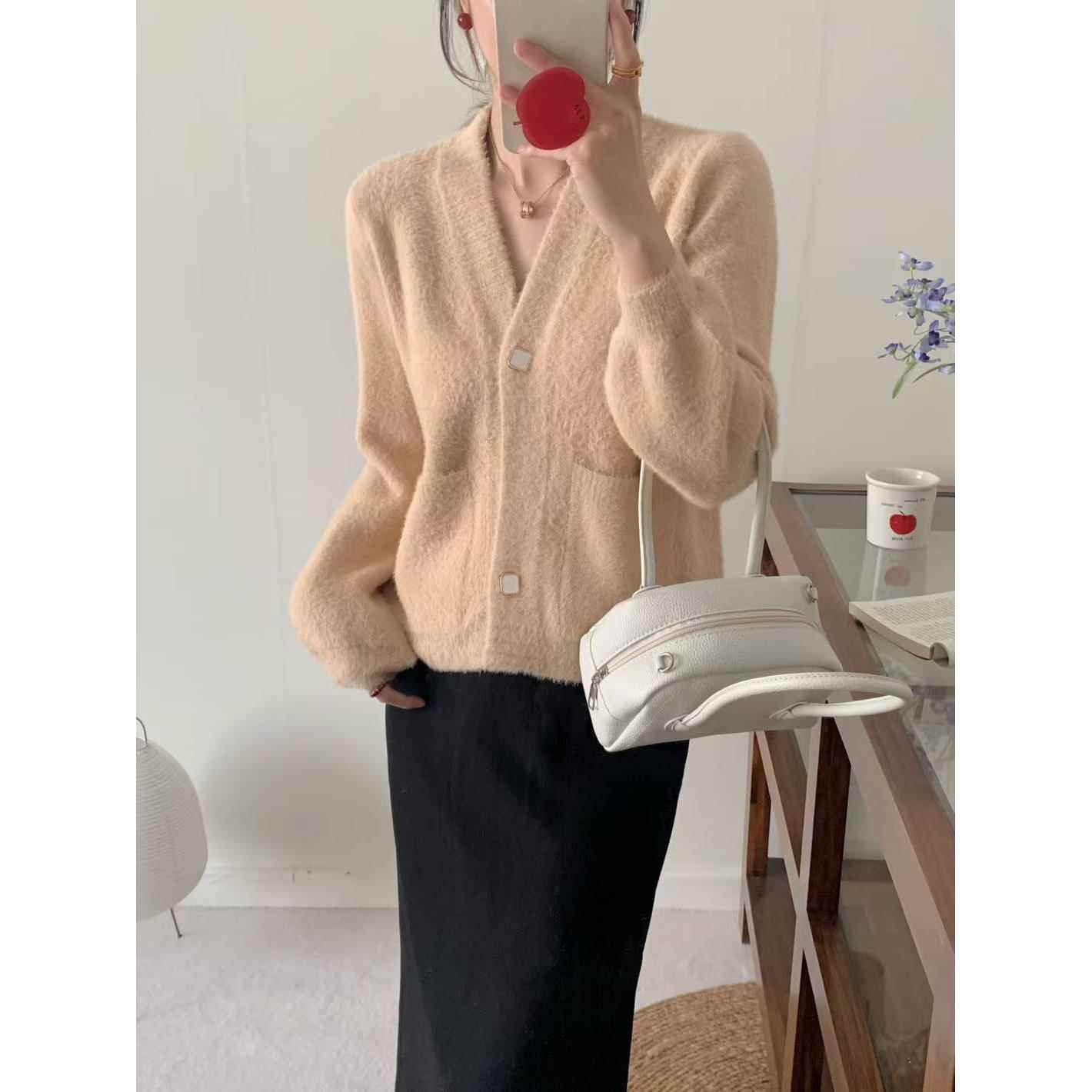 彷水貂绒针织开衫女宽松新款韩版春秋短款小个子宽松外穿毛衣外套