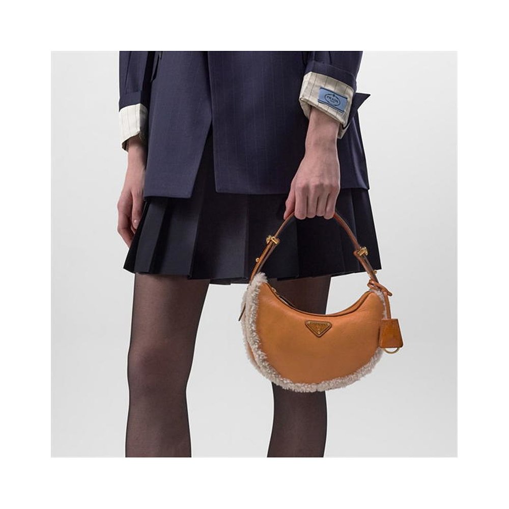 香港直邮Prada 普拉达 女士 Arque 毛羊皮肩包 舒适时尚