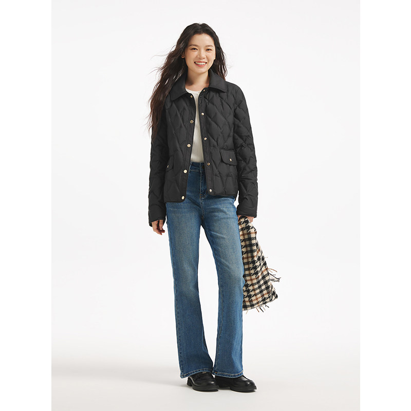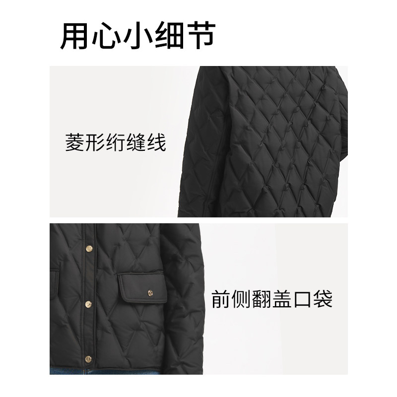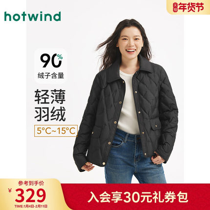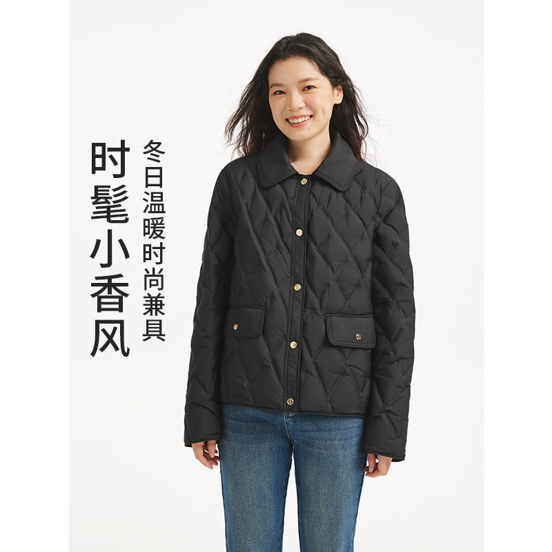 热风女士轻薄羽绒服2025年冬季新款小香风气质翻领羽绒服夹克外套