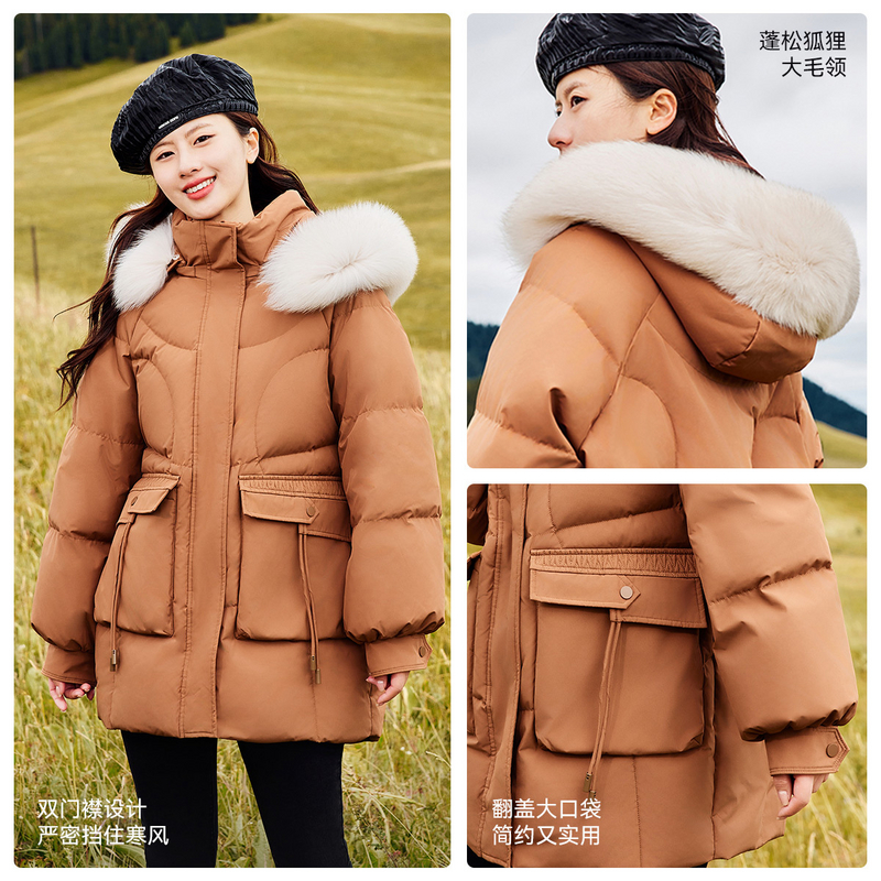 雪中飞绒绒领2025秋冬新款女士短款羽绒服保暖狐狸毛加厚休闲韩版