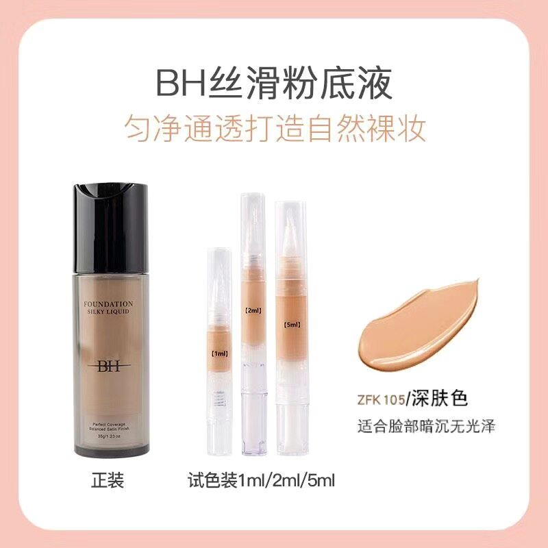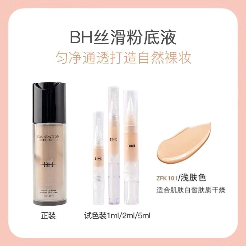 BH丝滑粉底液保湿自然清透养肤提亮肤色不易脱妆抗暗沉小样试色