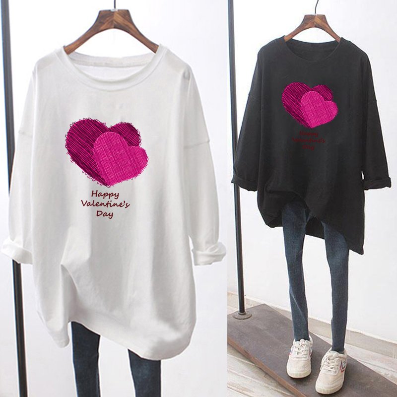 粉色爱心长袖T恤女2023春秋新款中长版遮屁股宽松内搭打底衫