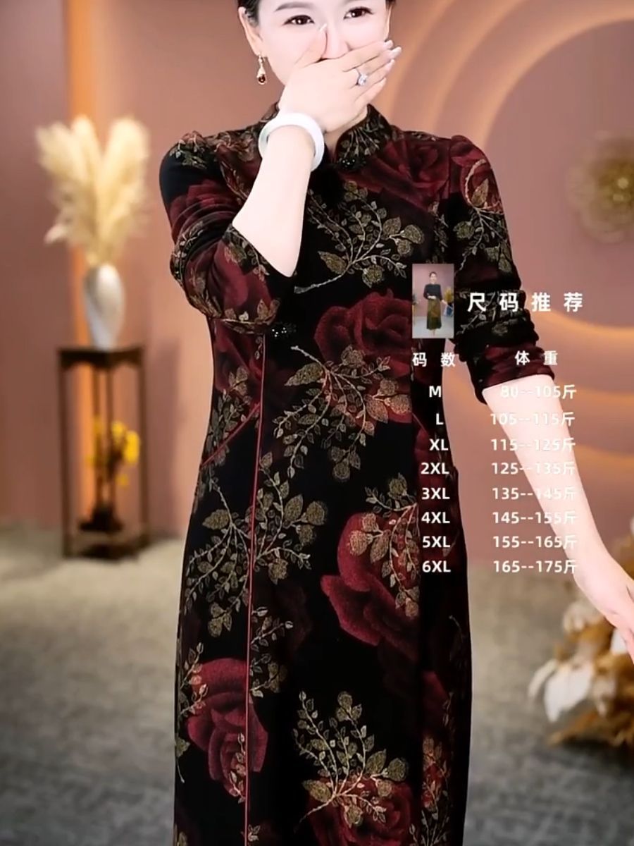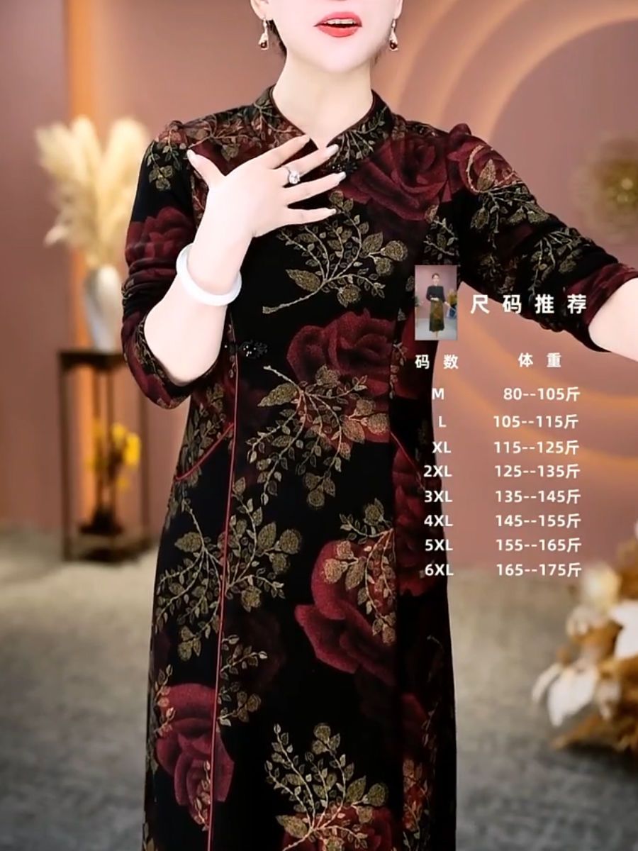高档2025年秋冬季新款长袖加绒加厚改良旗袍气质显瘦中长款连衣裙