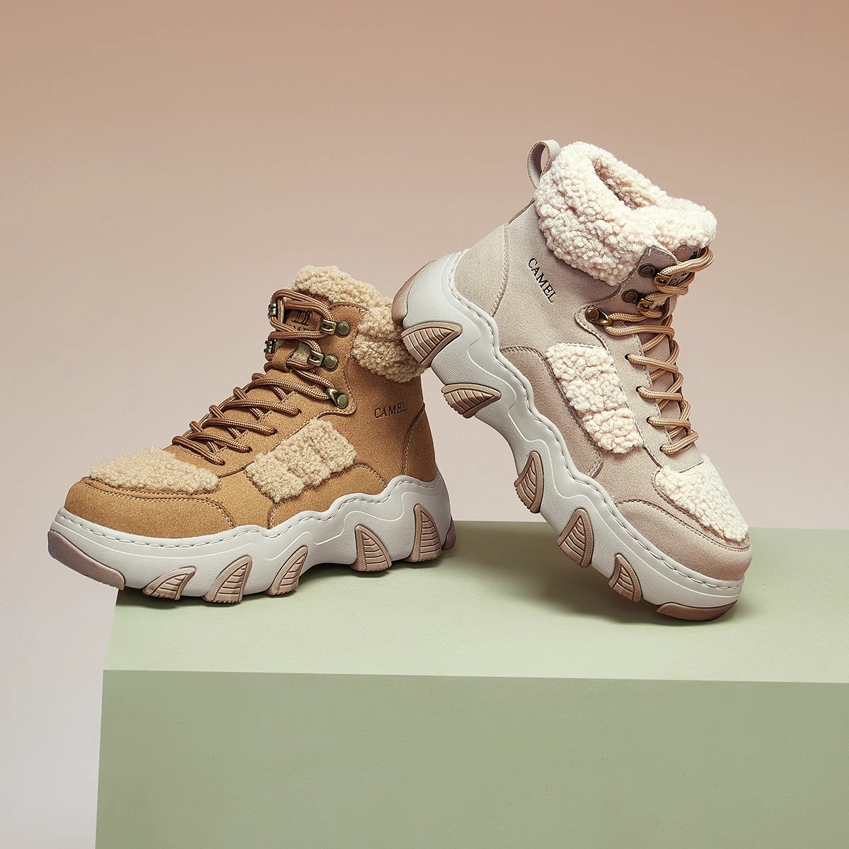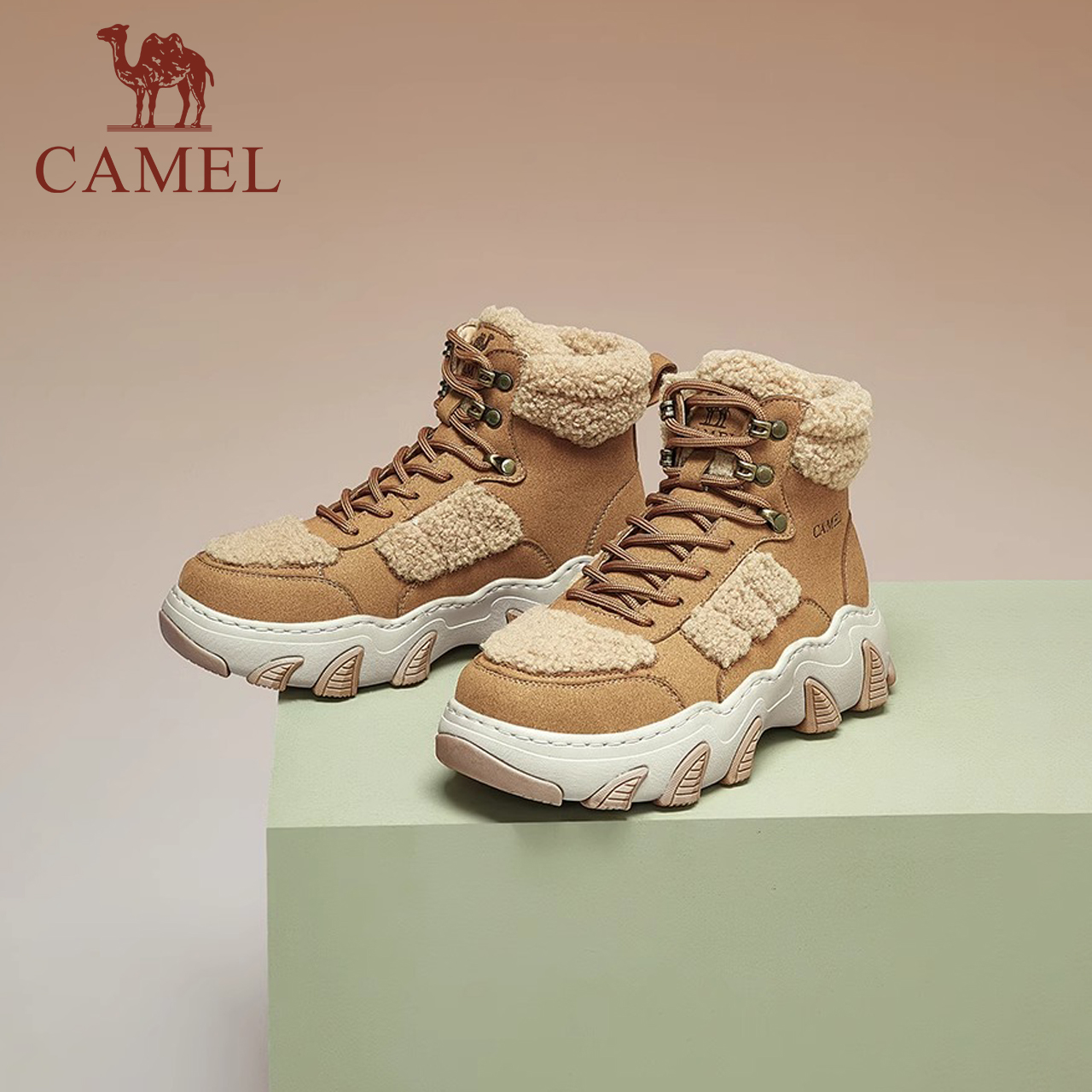 骆驼女鞋2025冬新款加绒加厚户外雪地靴厚底东北棉鞋马丁靴短靴女