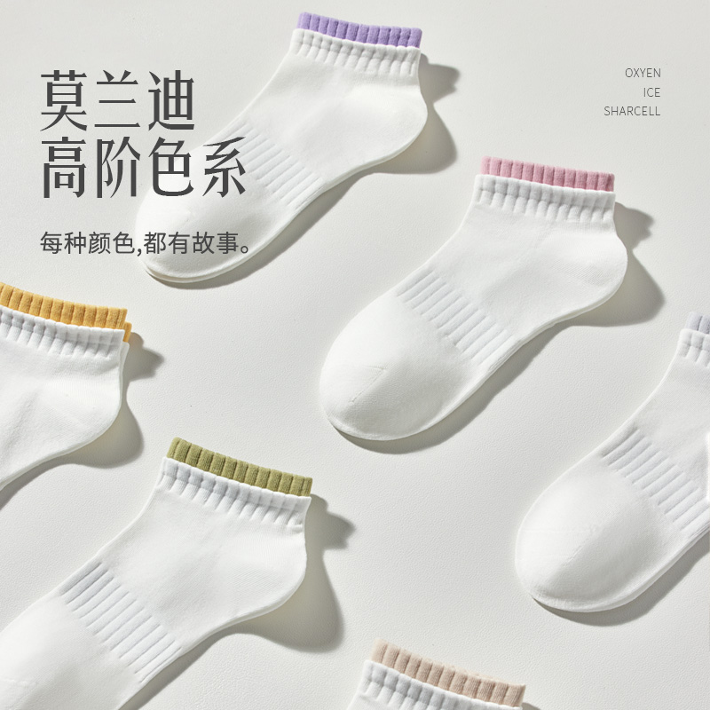 袜子女夏季薄款短袜纯棉防臭吸汗运动无骨白色短筒夏天学生船袜