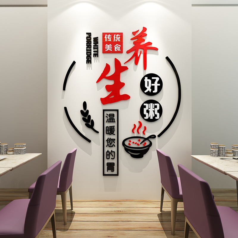 早餐店墙贴纸养生粥铺装修用品包子广告海报装饰饭面馆背景墙壁画