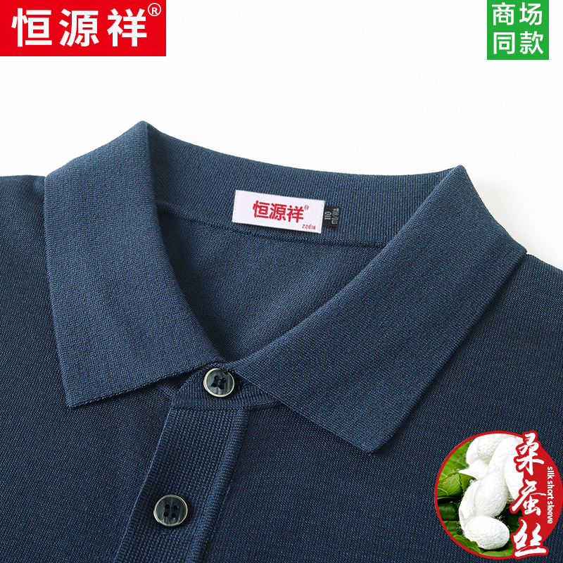 恒源祥时尚百搭桑蚕丝气质短袖T恤2025夏季真丝潮流翻领冰丝衣男