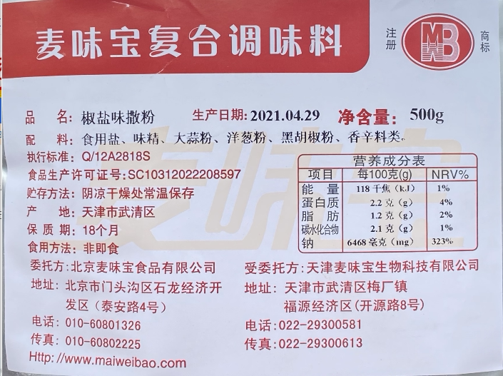 麦味宝椒盐味撒粉500g鸡排炸鸡鱿鱼油炸猪牛羊排肉串小龙虾商用