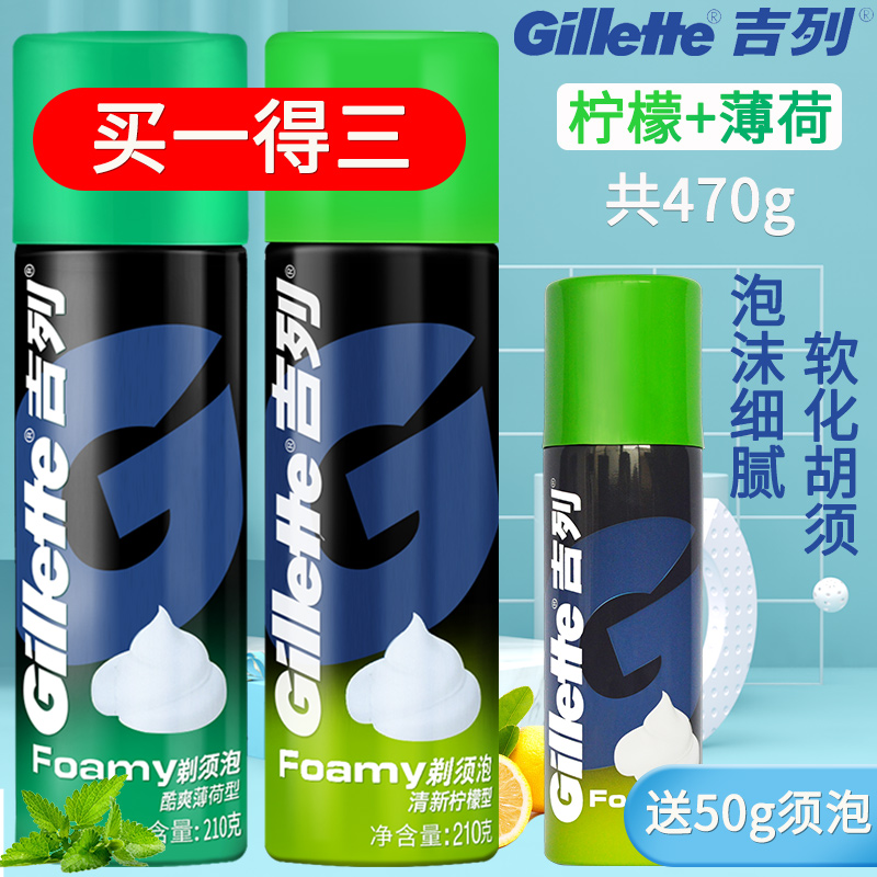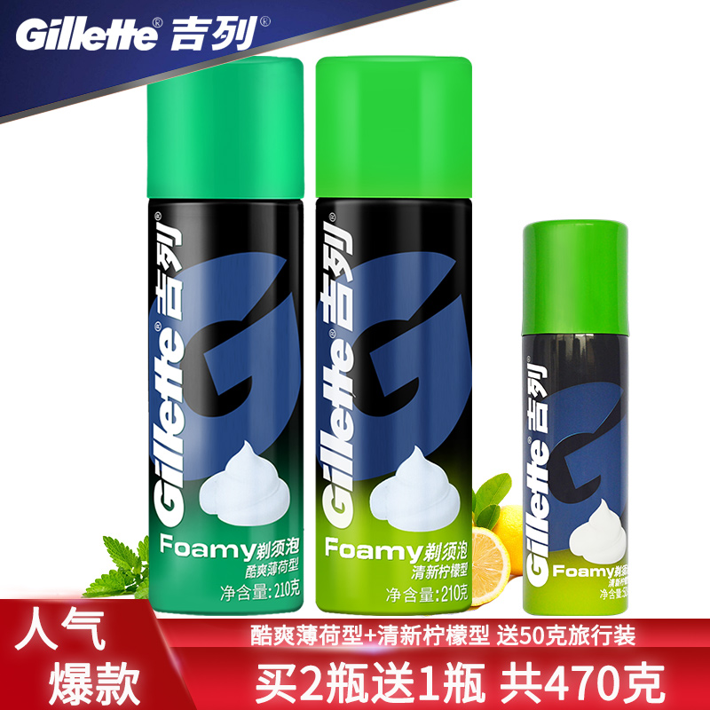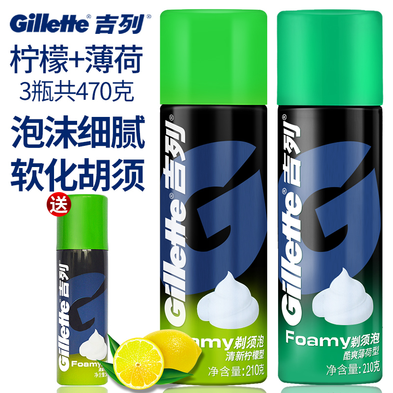 吉列剃须泡沫2瓶共420g男士刮胡泡刮胡膏剃须啫哩剃毛膏清新柠檬