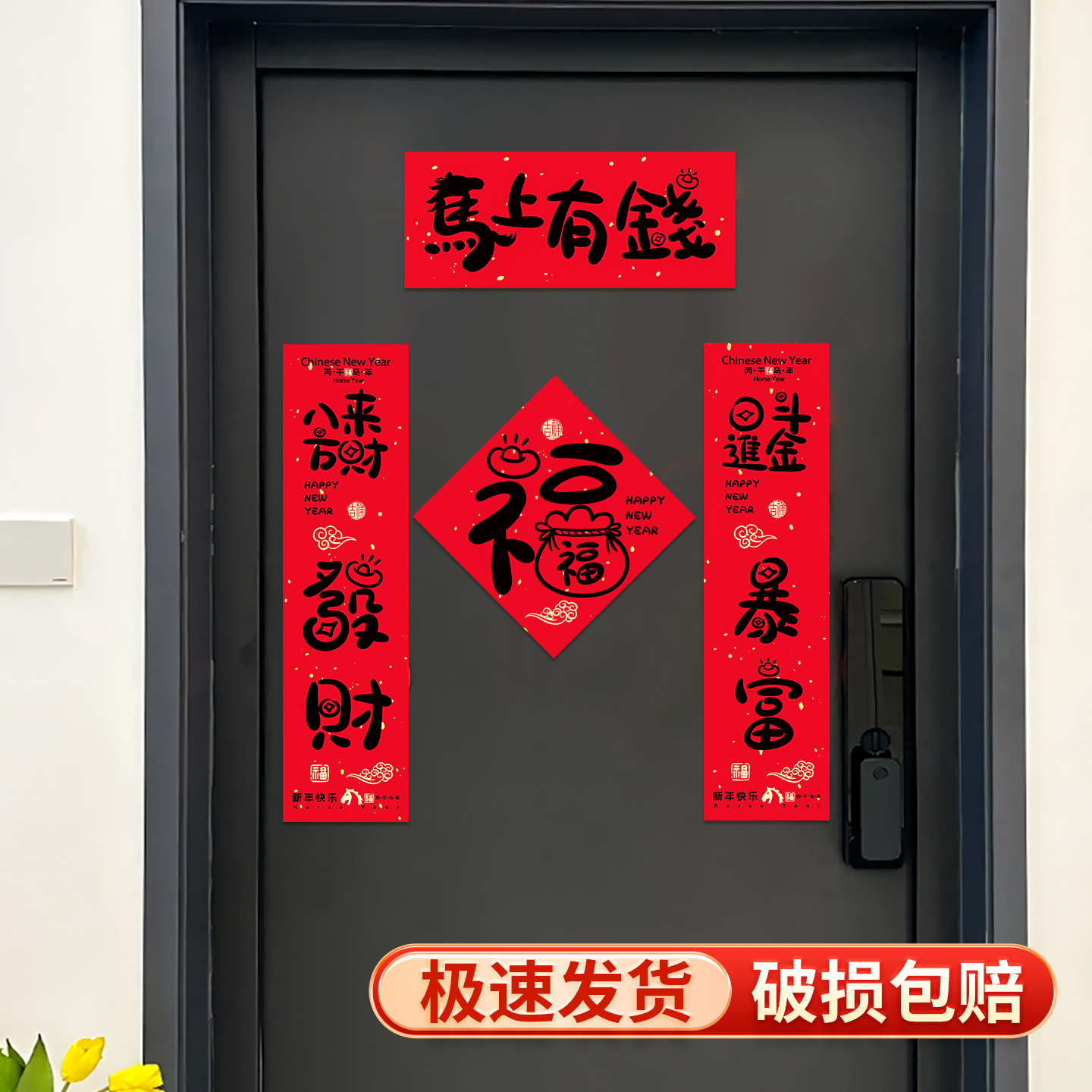 2026年马年对联磁吸春联入户门春节过年装饰新年门贴福字新款家用