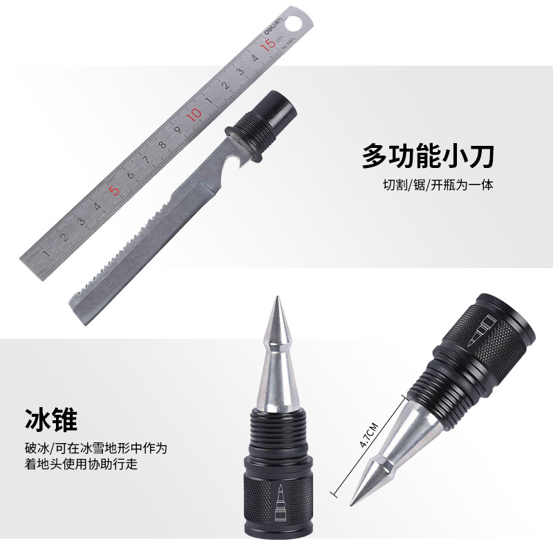 多功能登山杖配件加长管铝合金刀叉冰锥多功能T型头钨钢头破冰锥