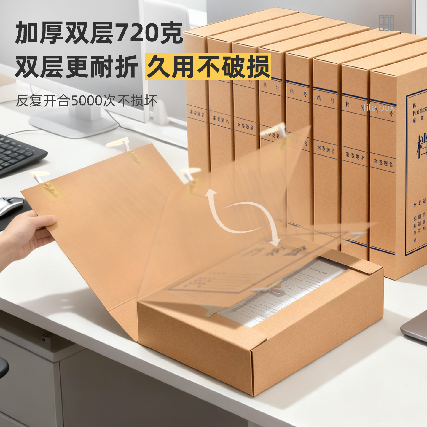 20个牛皮纸档案盒文件资料盒文件盒a4加厚大容量234cm收纳盒律师进口无酸纸质会计凭证盒订制定制印刷logo