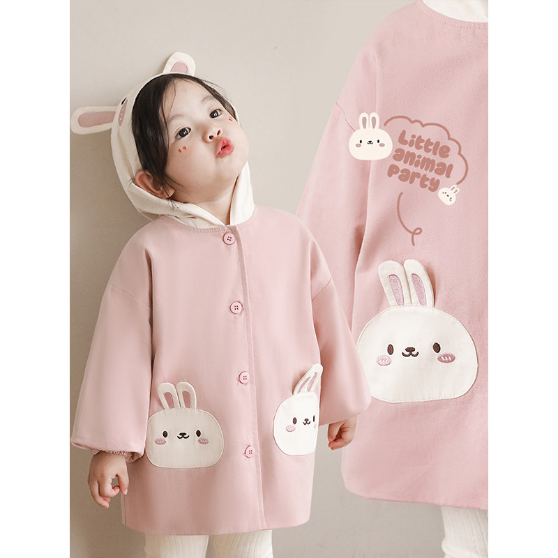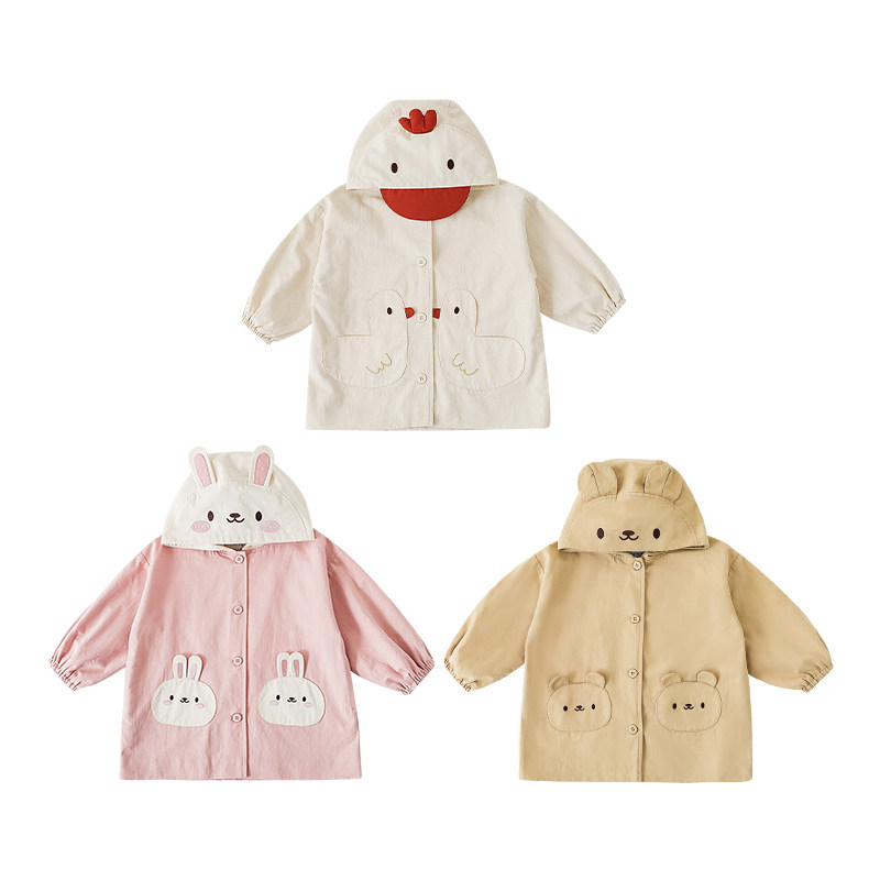 幼悠女童秋装宝宝卡通连帽外套风衣儿童时尚童装贴布刺绣防风长袖