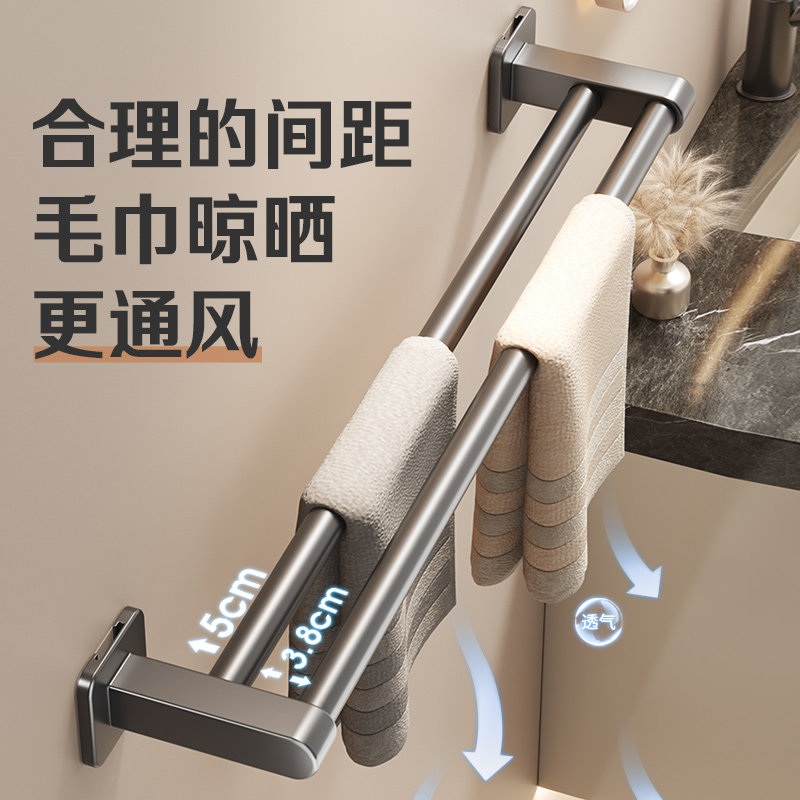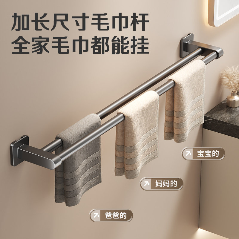 卫生间毛巾架免打孔浴室壁挂毛巾杆置物架厕所吸盘毛巾挂杆太空铝