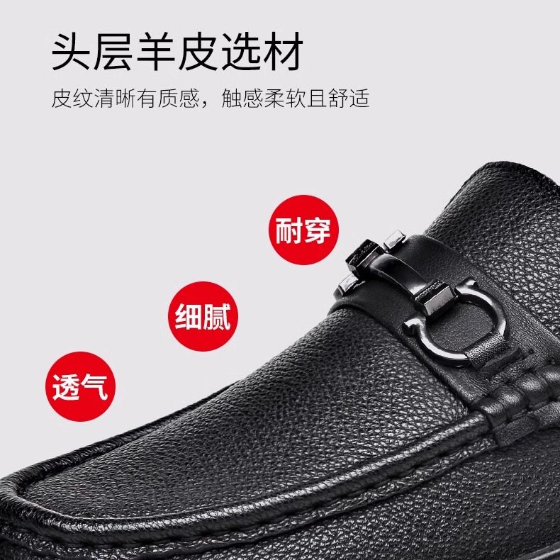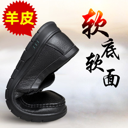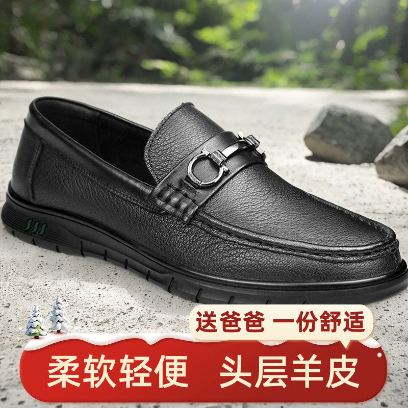 纯羊皮鞋男式软底真皮休闲鞋子透气春夏一脚蹬懒人柔软舒适爸爸鞋