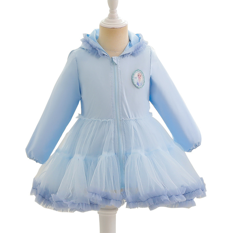 冰雪奇缘女童外套爱莎公主裙春秋薄款网纱连帽上衣宝宝空调衫风衣