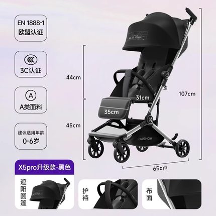 哈秀X5pro儿童口袋婴儿推车0-6岁可坐可躺轻便折叠遛娃神器