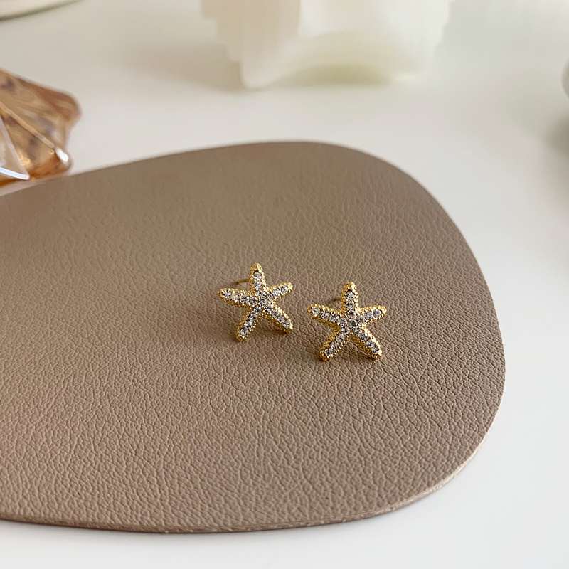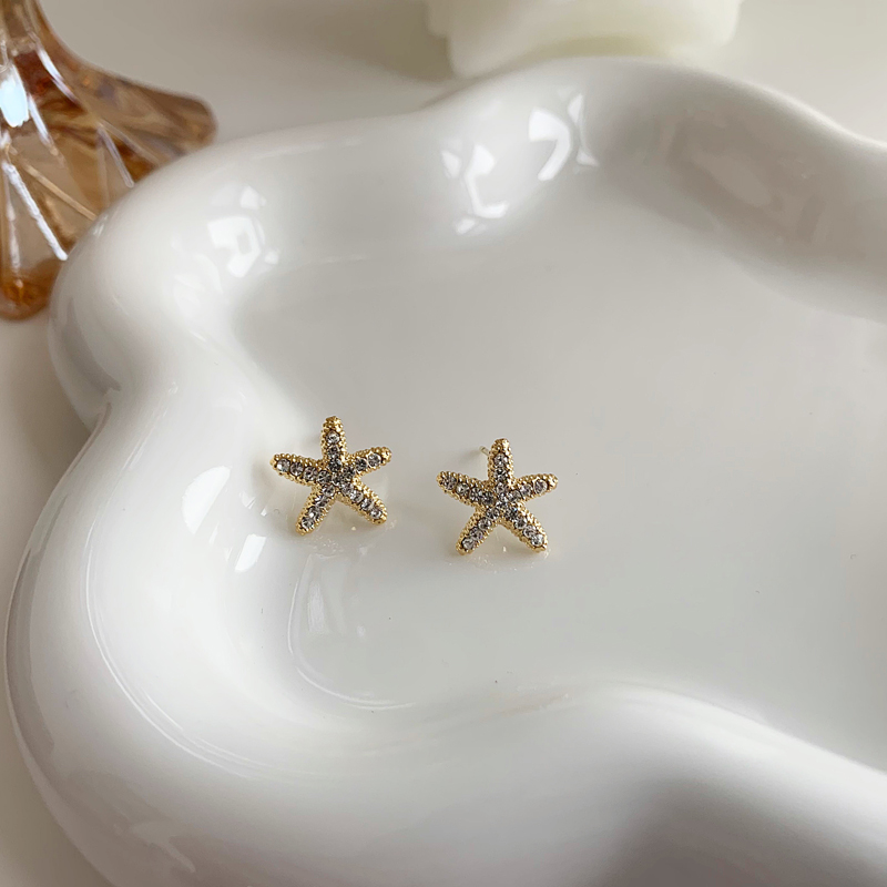 金色海星造型耳钉s925银针耳环精致百搭气质甜美耳饰女无耳洞耳夹