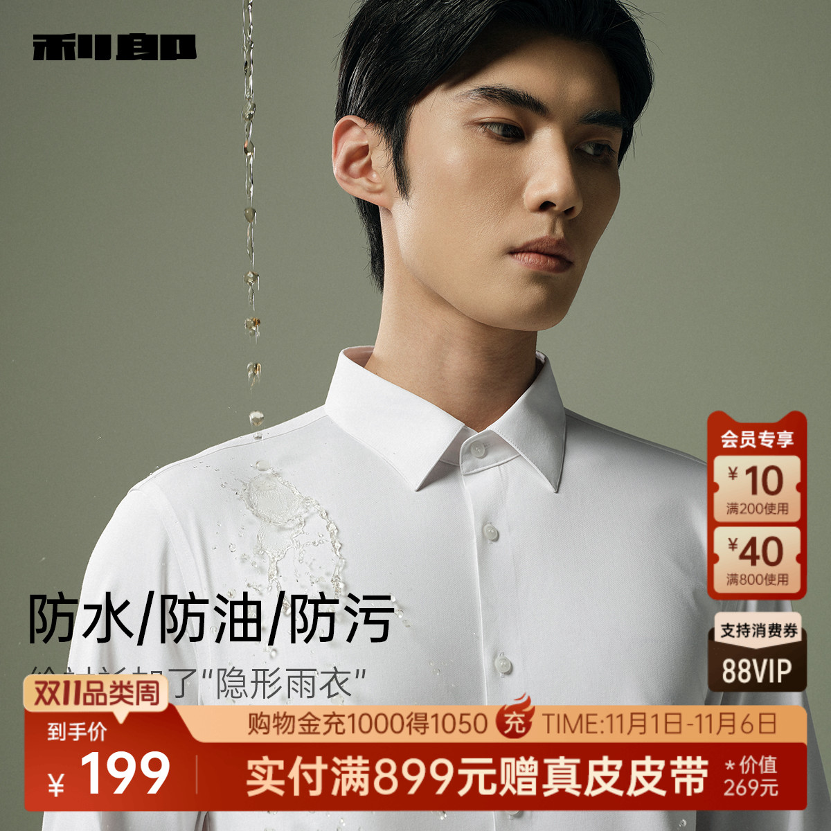 【三防】利郎官方 白色衬衫男士2025秋季新款商务男装易打理衬衣