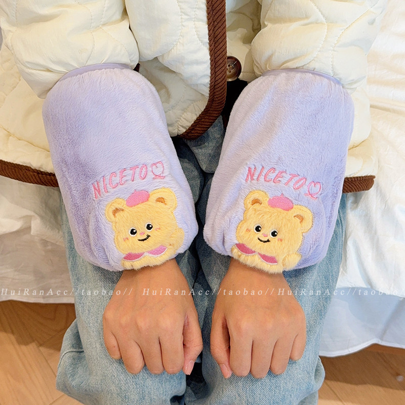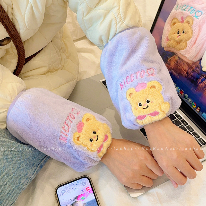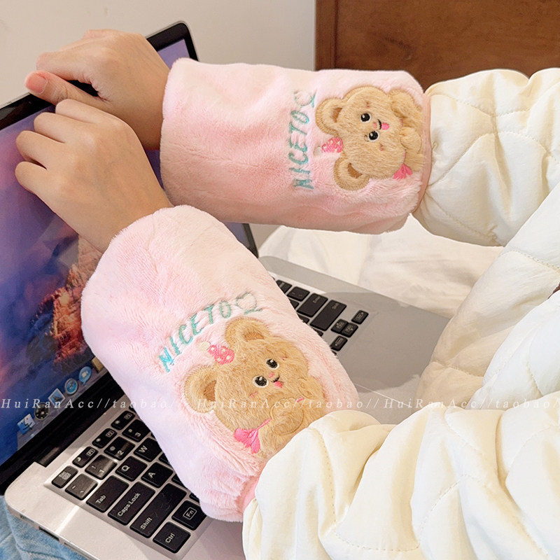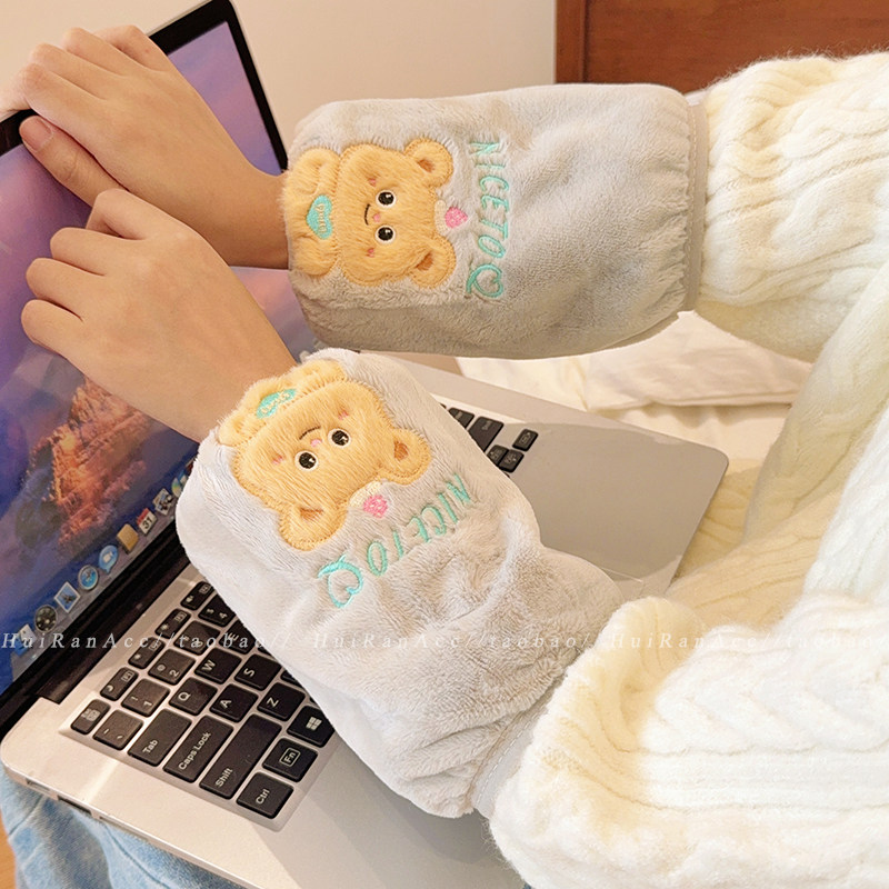 可爱小熊羽绒服防脏袖套女2025新款秋冬办公学生写字防污耐磨套袖