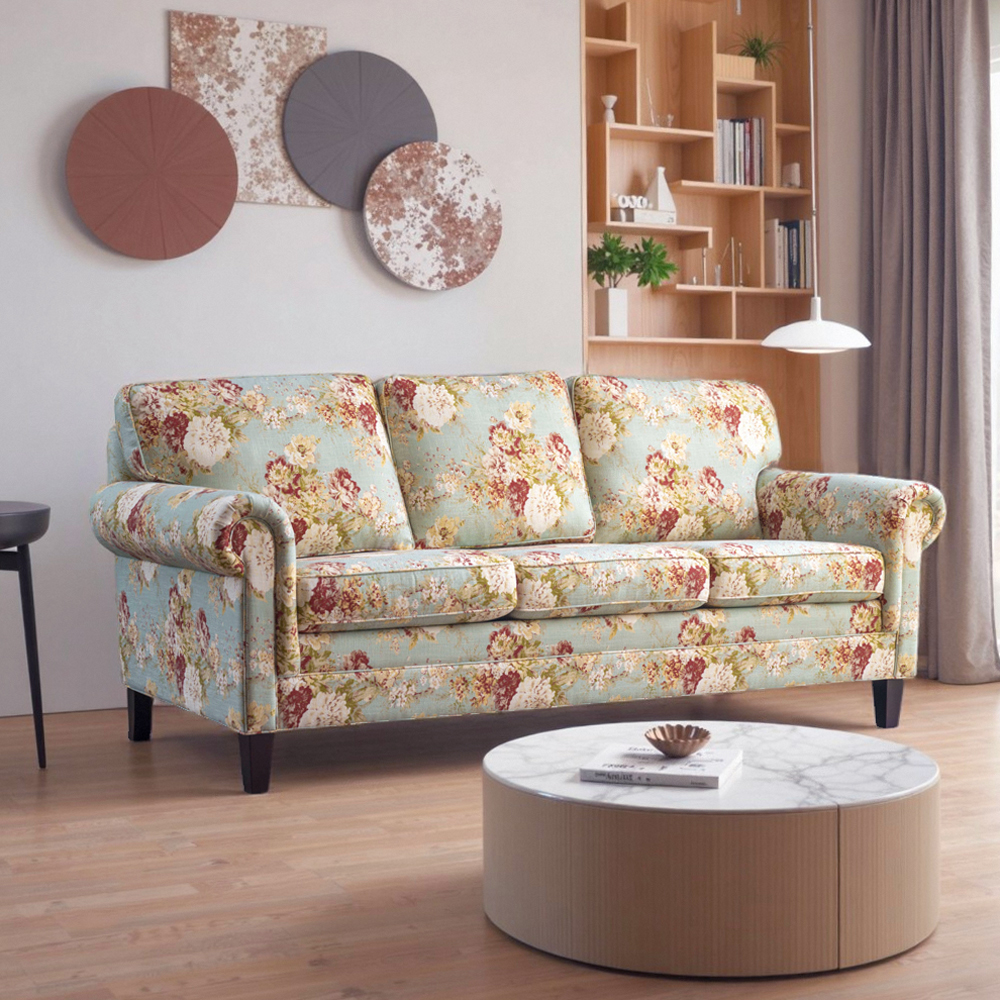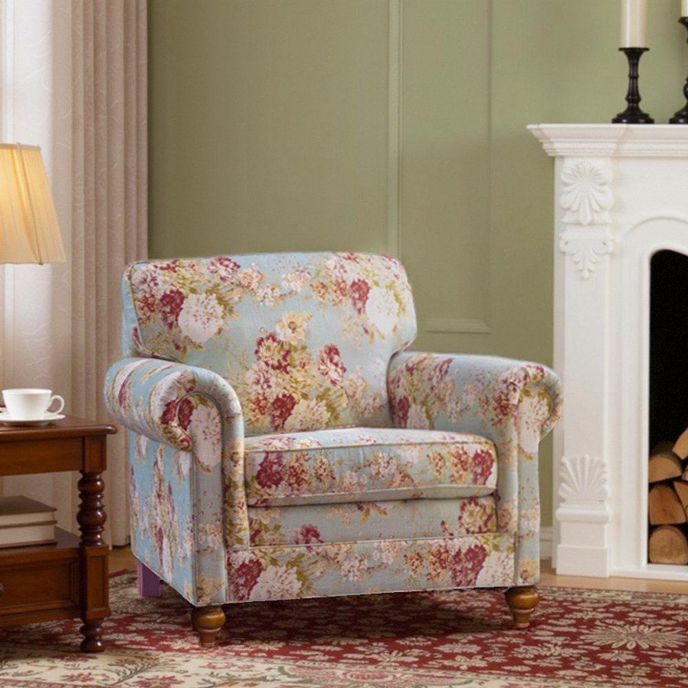 圣奇尼美式复古乡村亚麻印花沙发