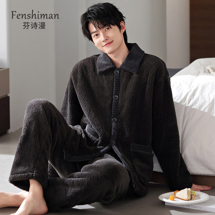 睡衣男士秋冬法兰绒家居服