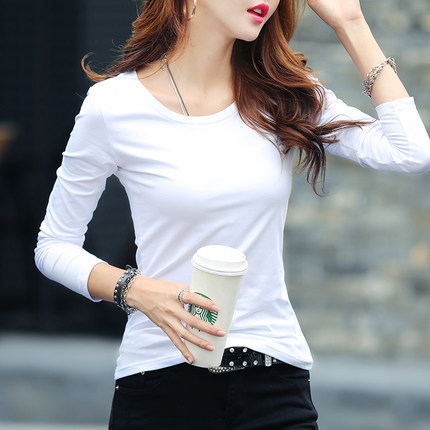 2026新款棉质白色长袖t恤女洋气修身上衣内搭圆领紧身德绒打底衫