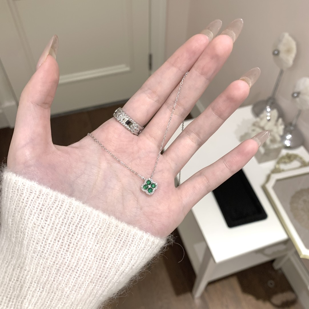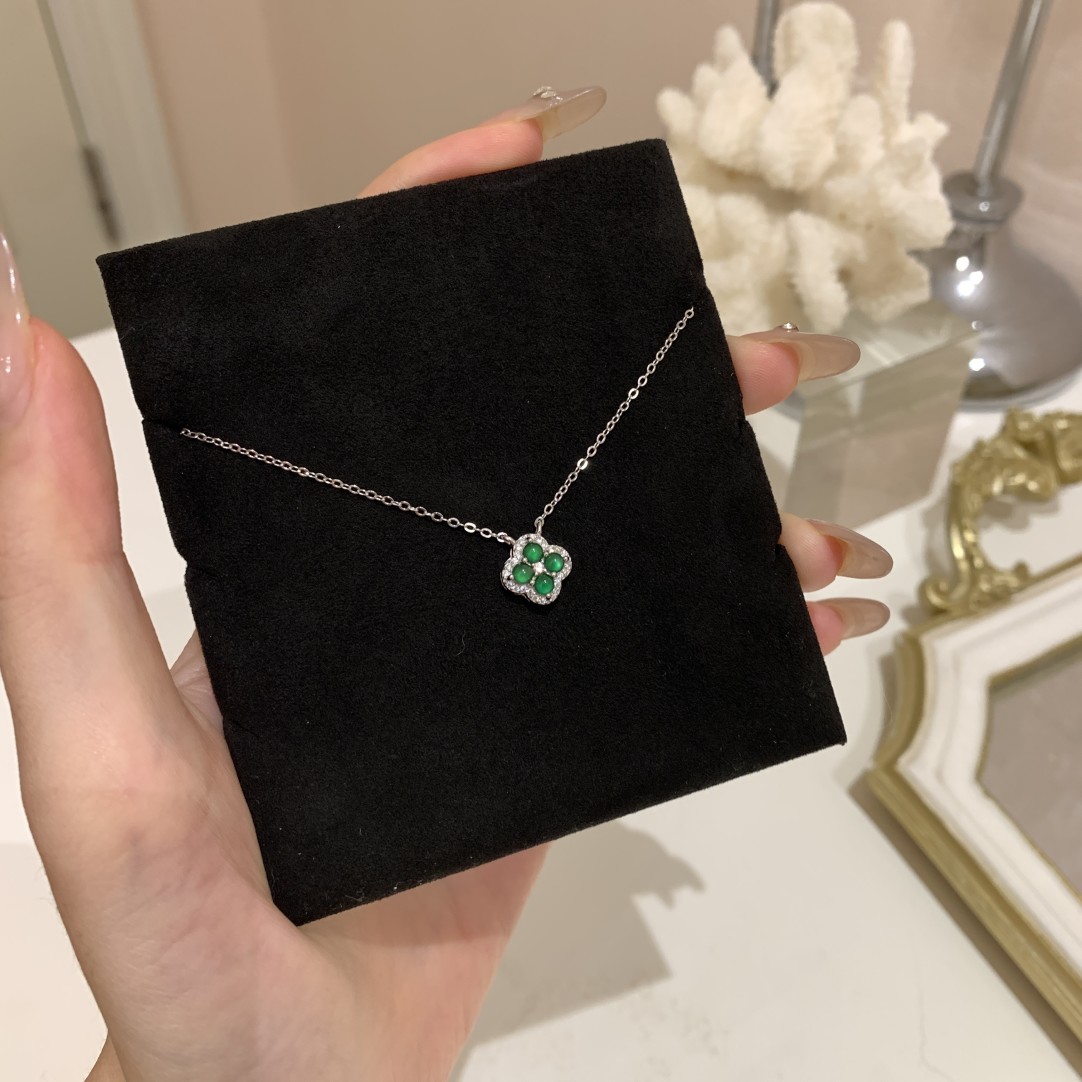 绿色仿翡翠幸运草项链2025新款轻奢气质小众设计锁骨链送女友礼物