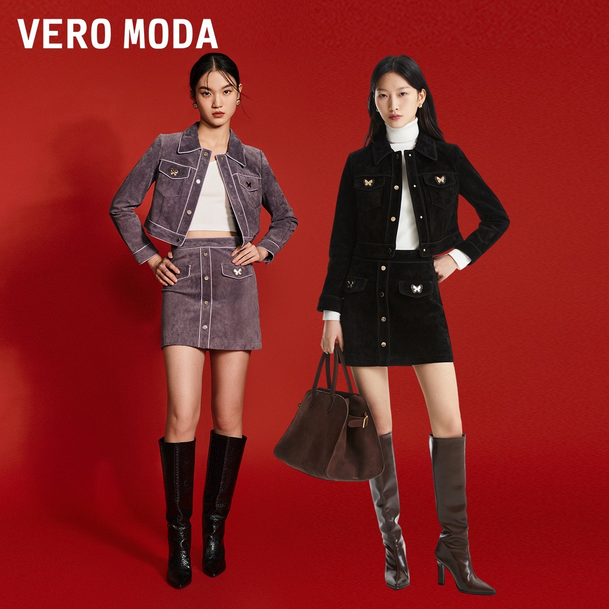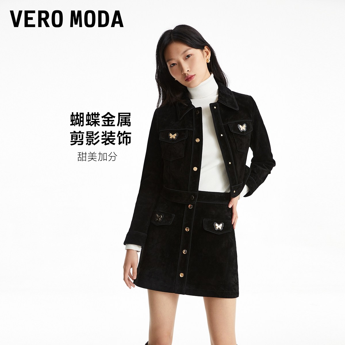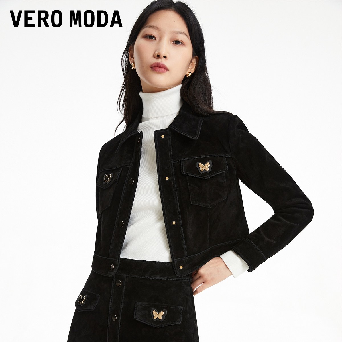 绫致Vero Moda皮衣女秋冬街头风蝴蝶装饰夹克外套时尚潮流