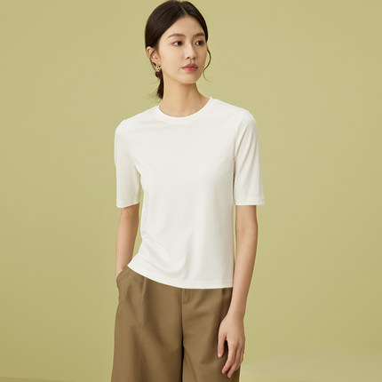 莫代尔棉半袖T恤女圆领春夏简约内搭上衣韩版正肩打底小衫五分袖