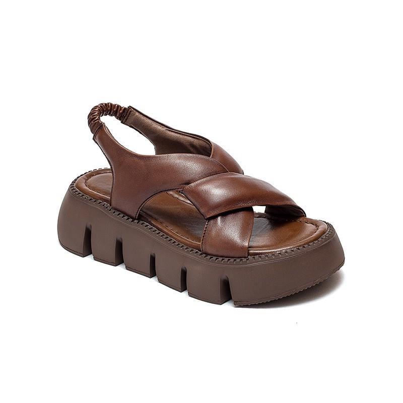 2025秋季头层牛皮厚底罗马风格女鞋时尚复古凉鞋舒适百搭