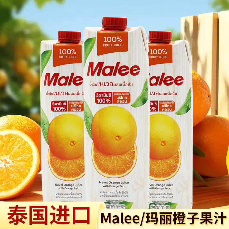 Malee玛丽菠萝汁泰国进口大瓶1L橙汁山竹汁葡萄芒果100%果汁饮料
